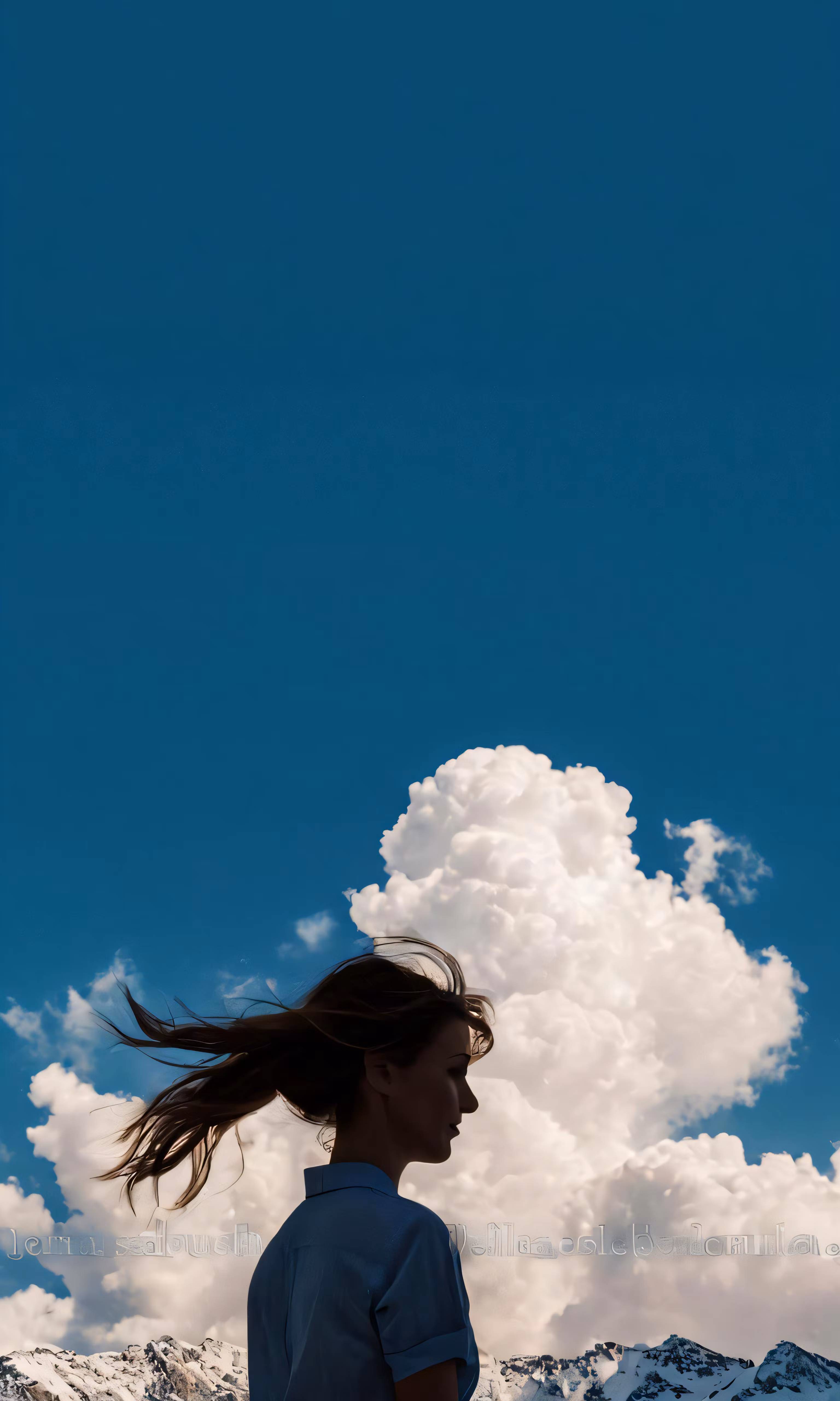 High resolution picture, free to use, a young woman standing in the snow holding a kite