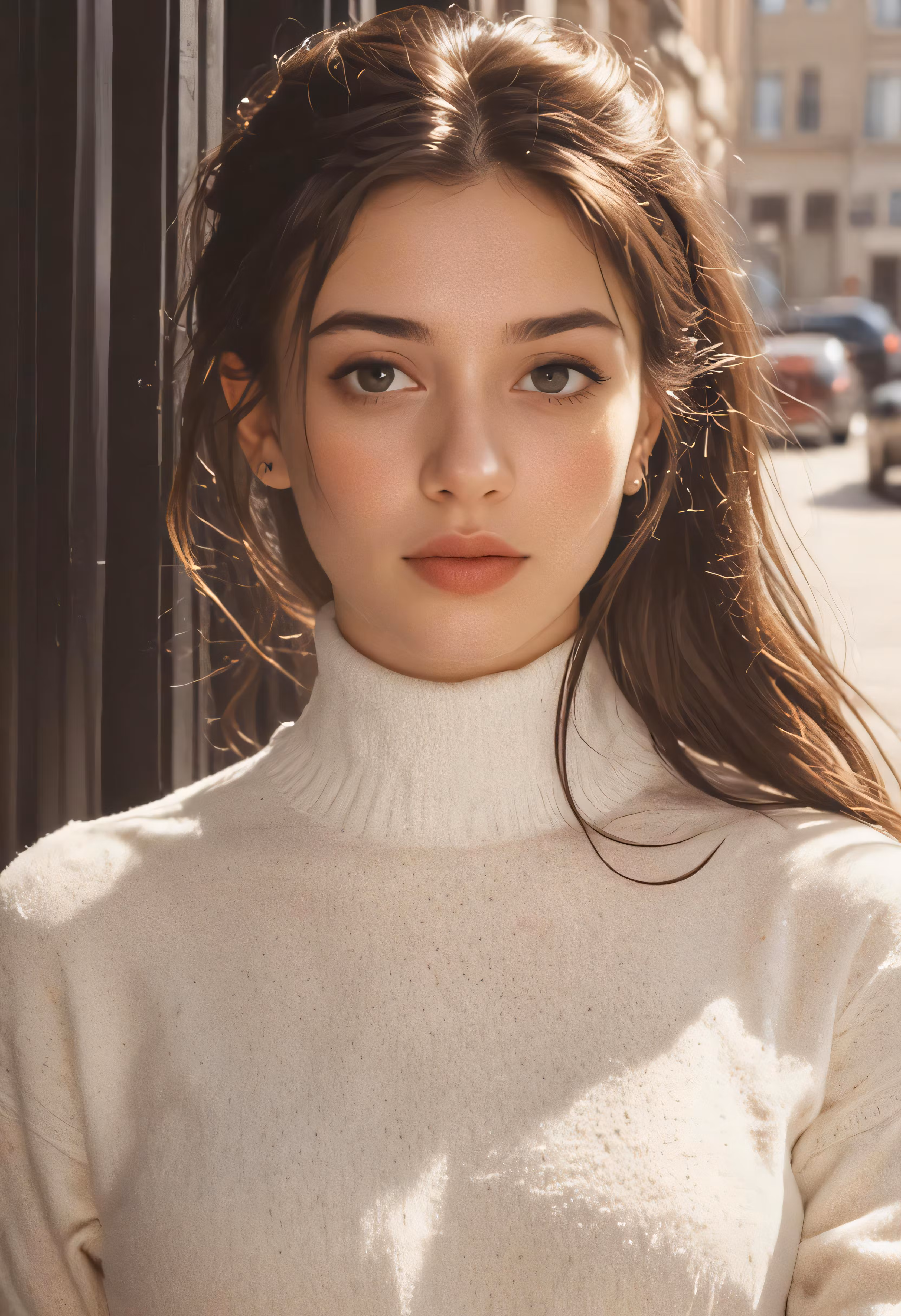 High resolution picture, free to use, a young woman standing next to a pole