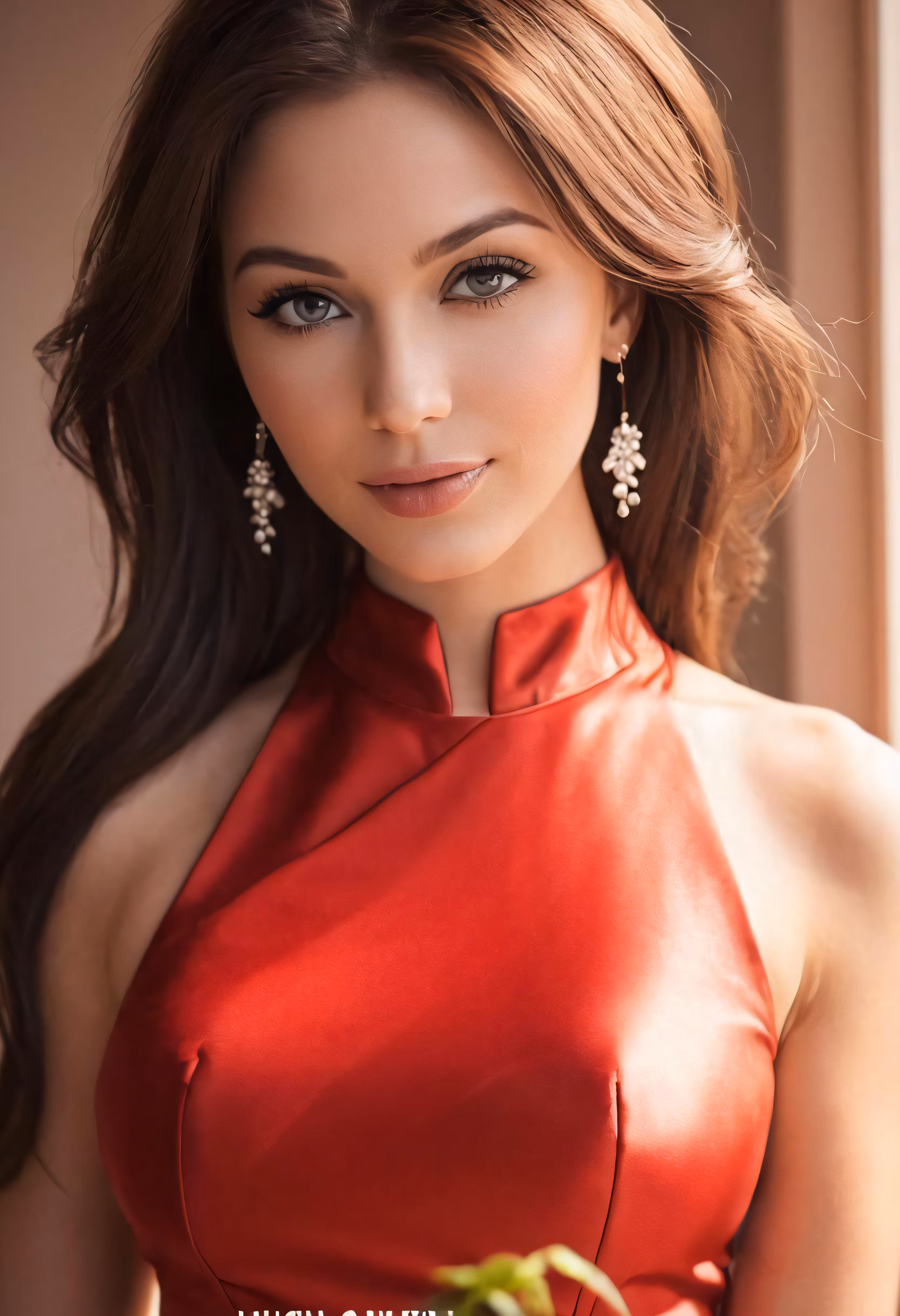 High resolution picture, free to use, a young woman wearing red posing for the camera