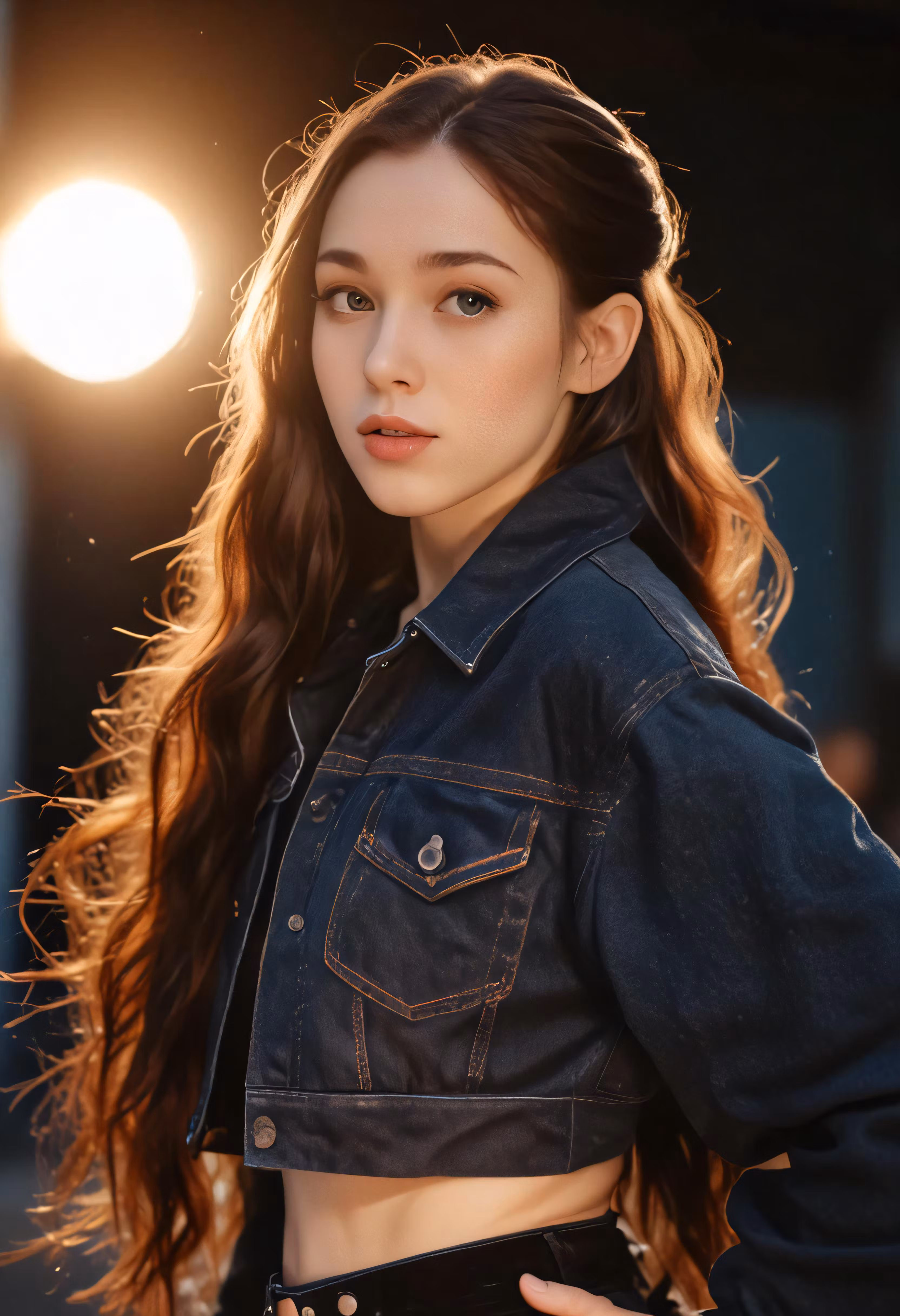 High resolution picture, free to use, a young woman with long hair in leather jacket