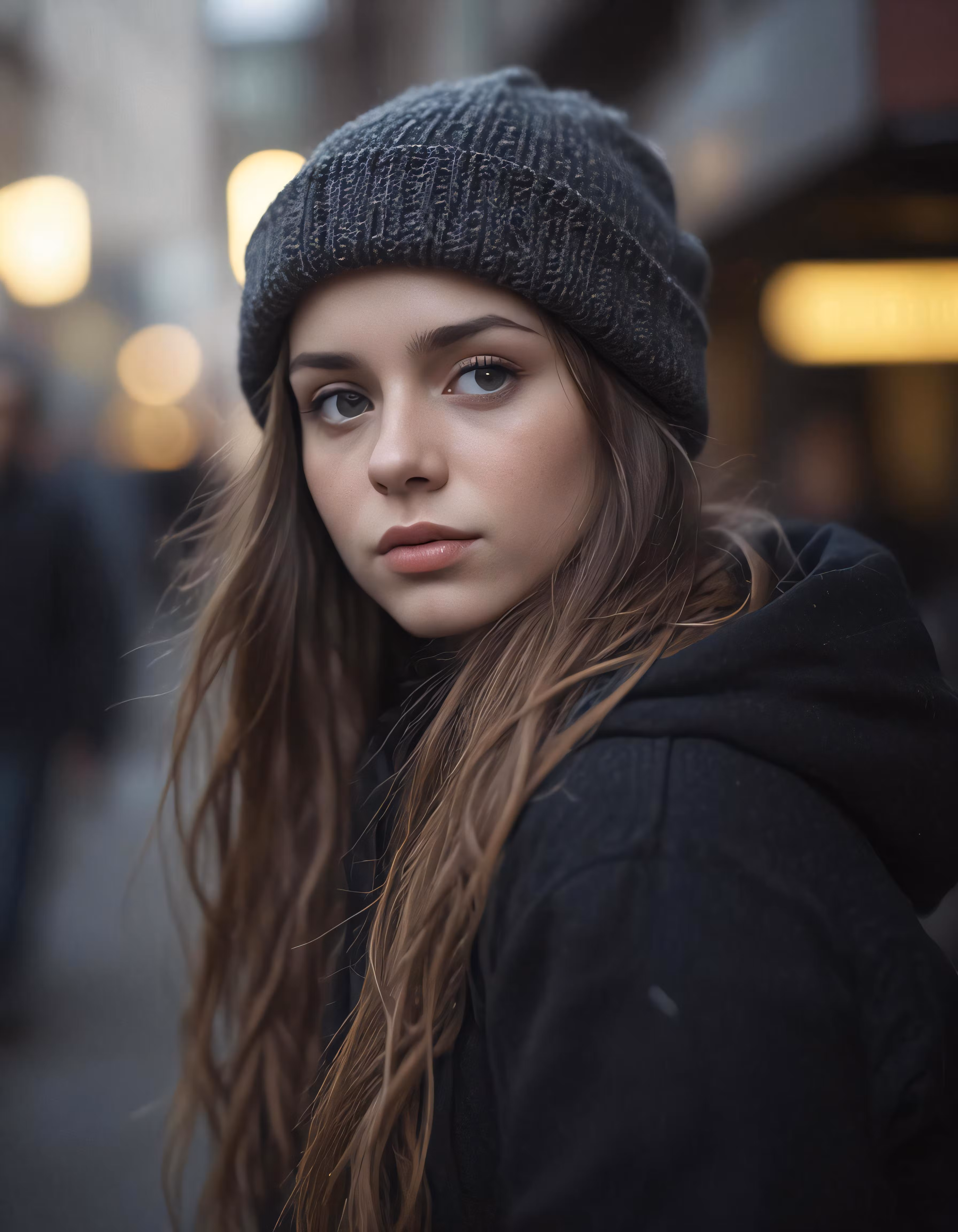 High resolution picture, free to use, a young woman with long hair is wearing a black jacket