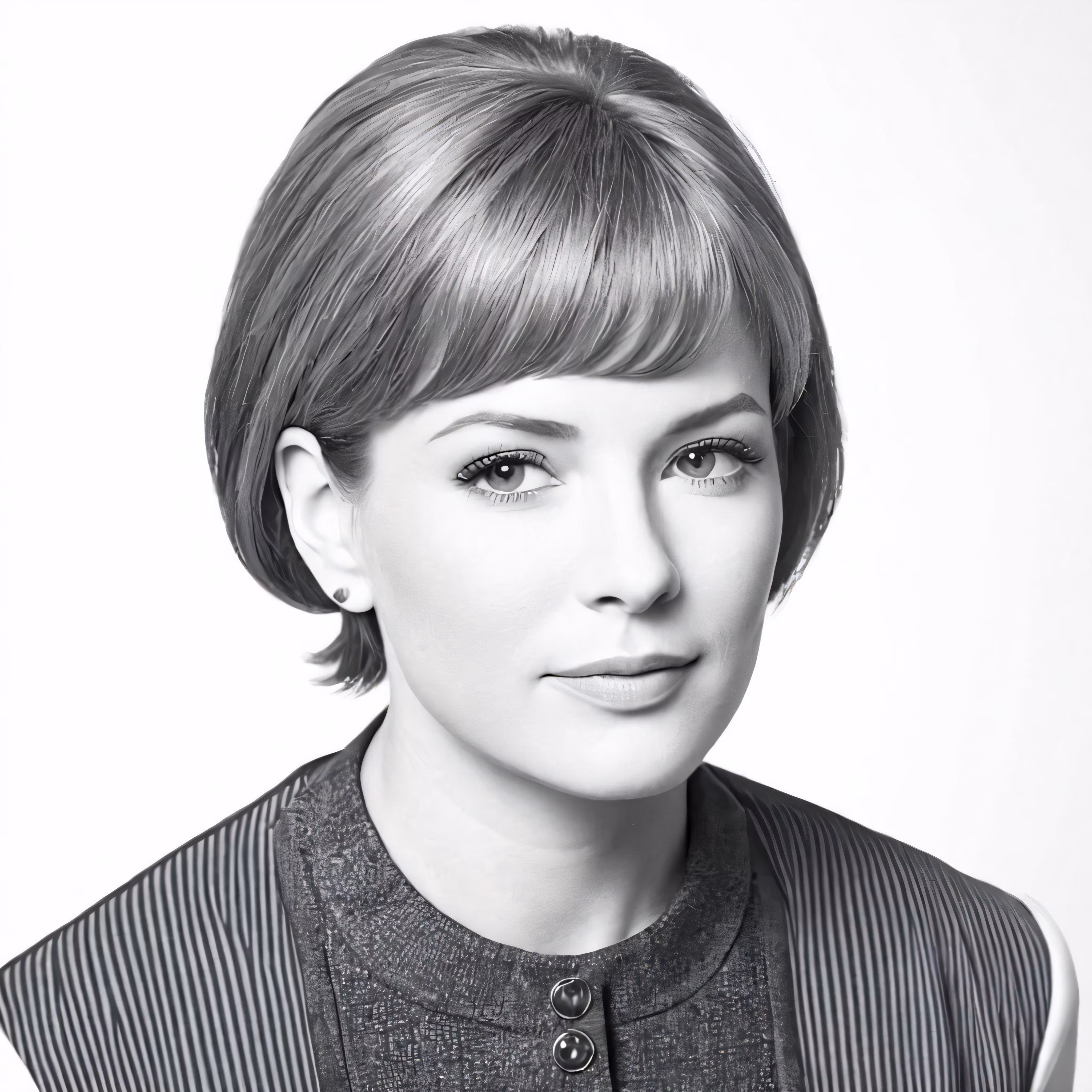 High resolution picture, free to use, a young woman with short hair wearing a black and white photo