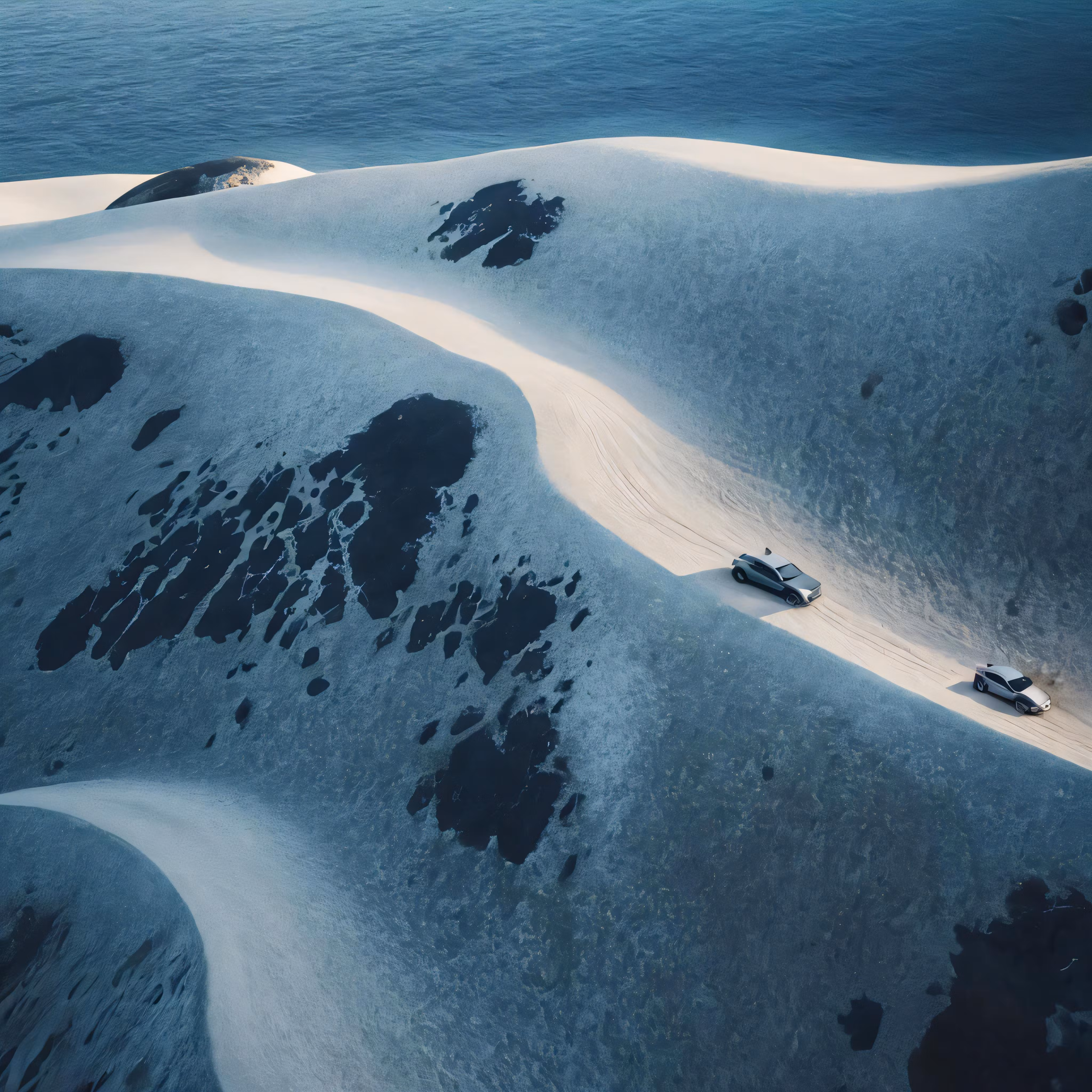 High resolution picture, free to use, aerial view of sand dunes and ocean waters