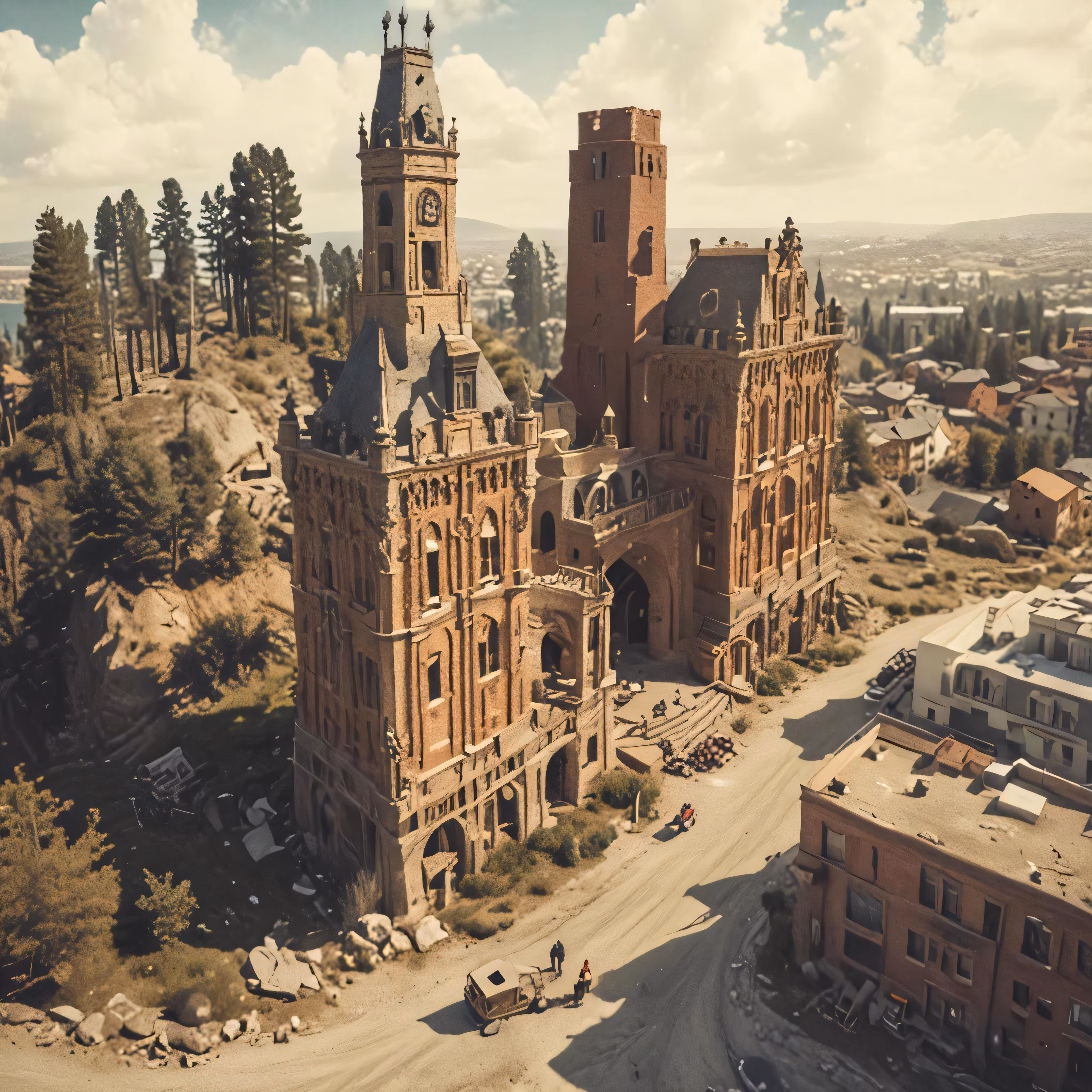 High resolution picture, free to use, an abandoned building in a rural area with trees in the background