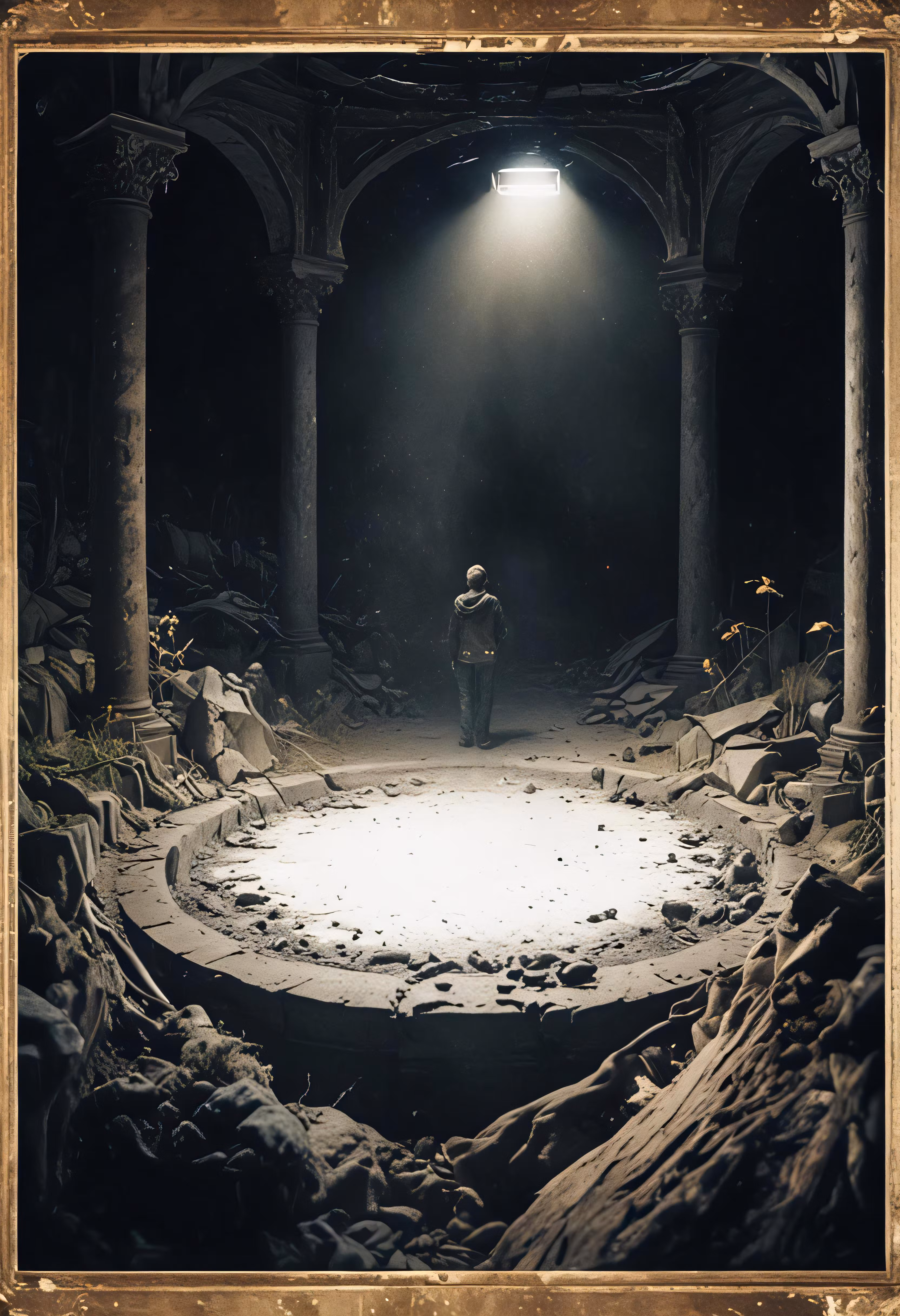 High resolution picture, free to use, an abandoned theater is seen in the dark