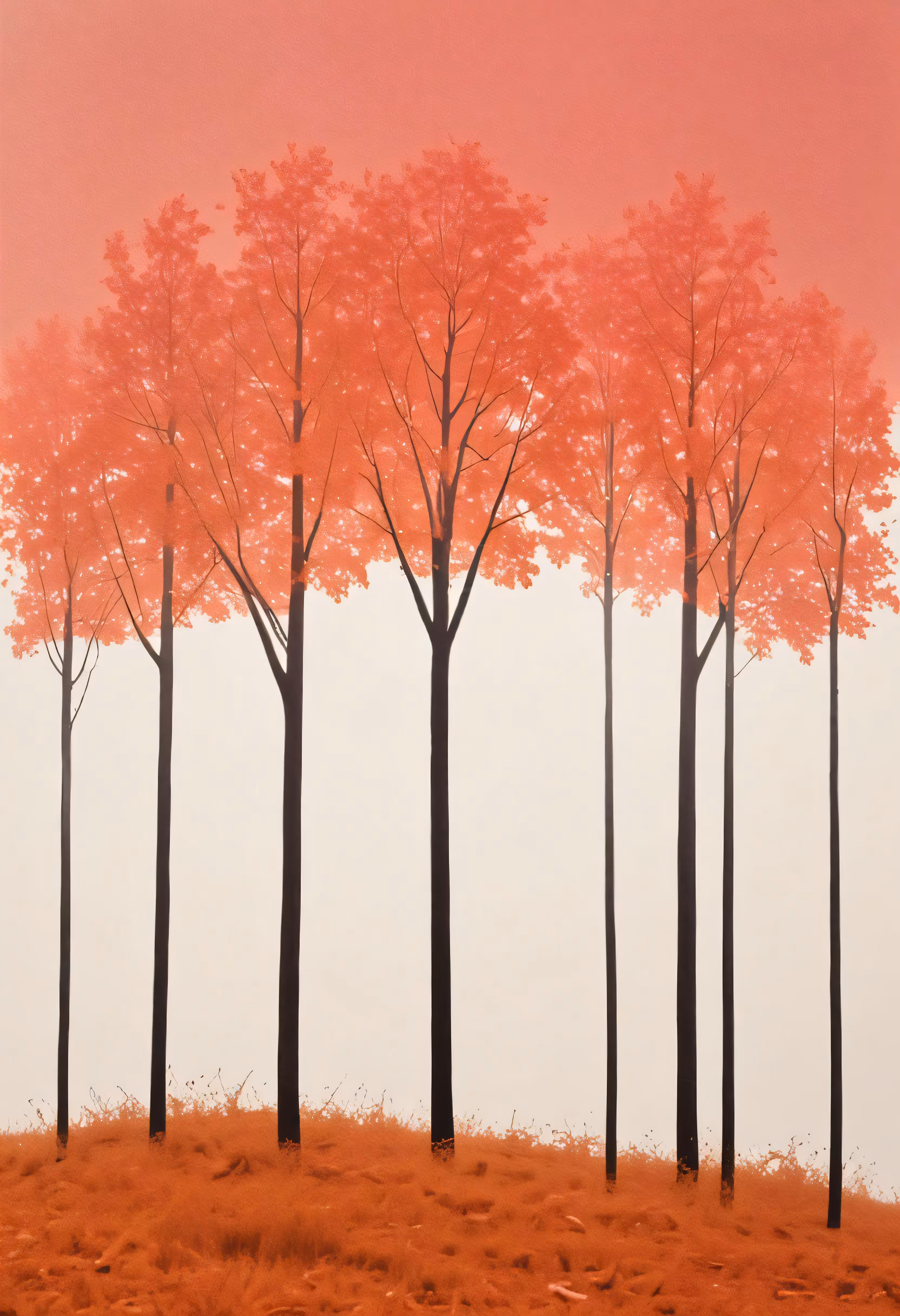 High resolution picture, free to use, an abstract painting of several trees on a hillside
