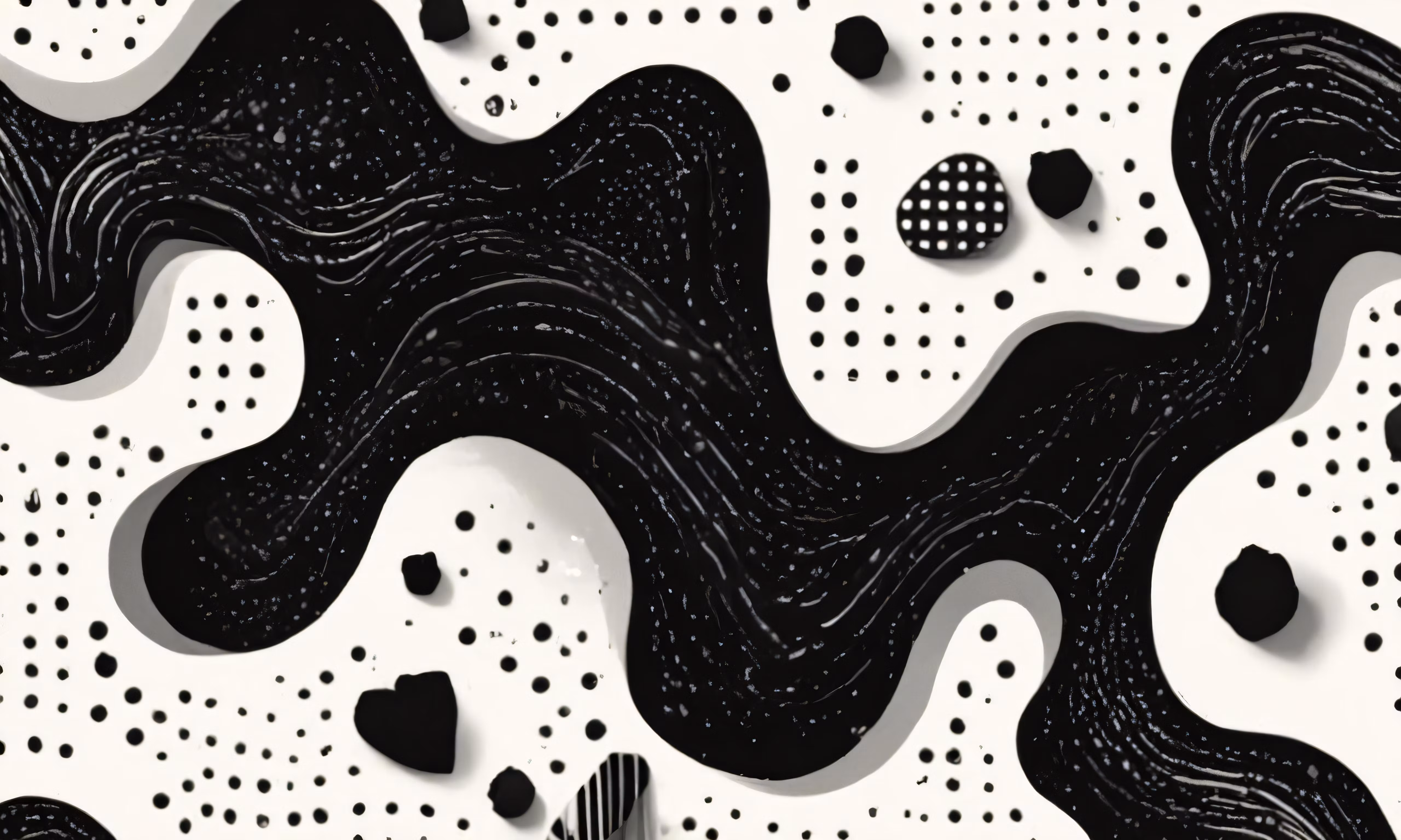 High resolution picture, free to use, an abstract painting of waves and dots in black and white