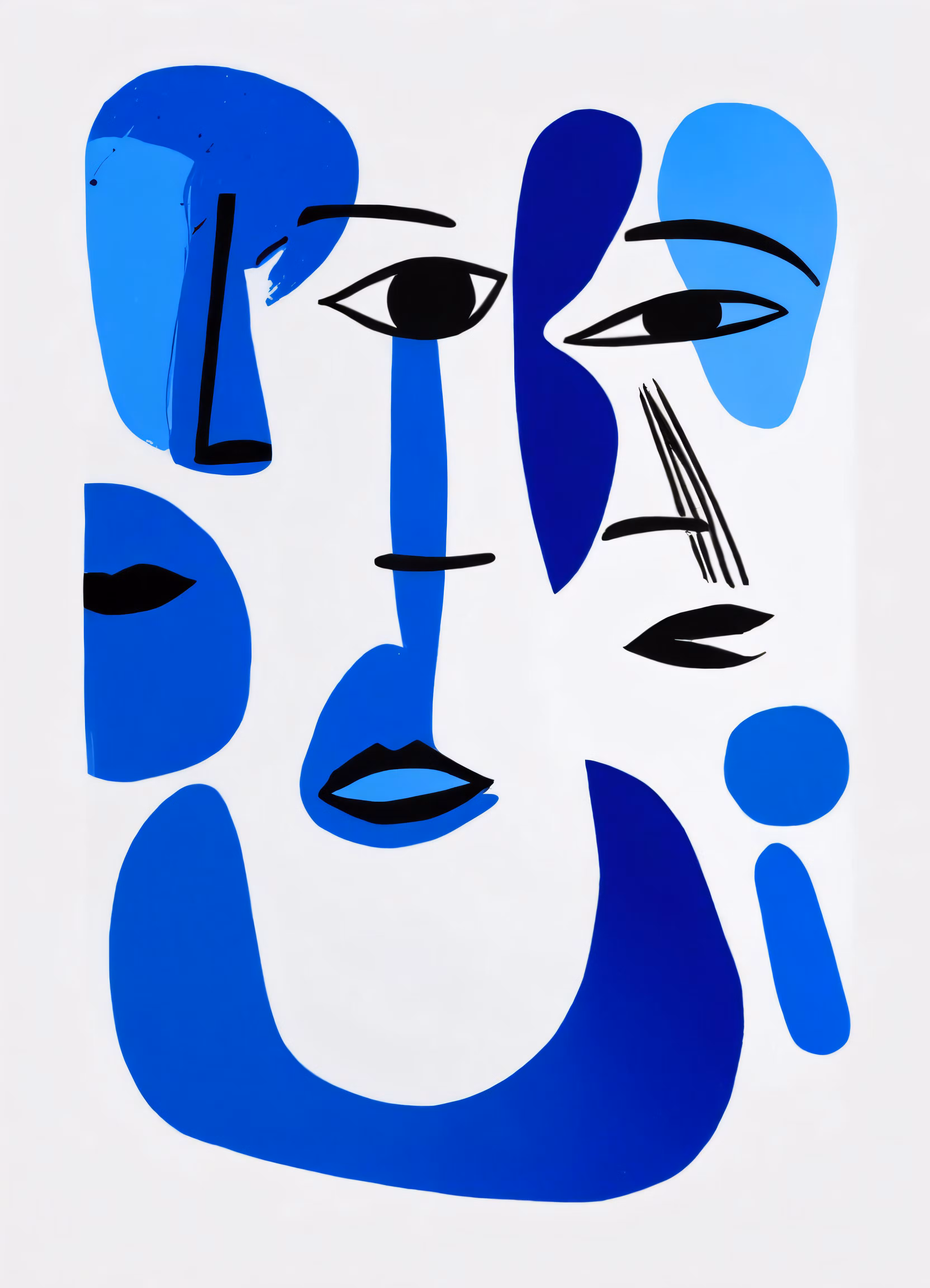 High resolution picture, free to use, an abstract painting with blue shapes on a white surface