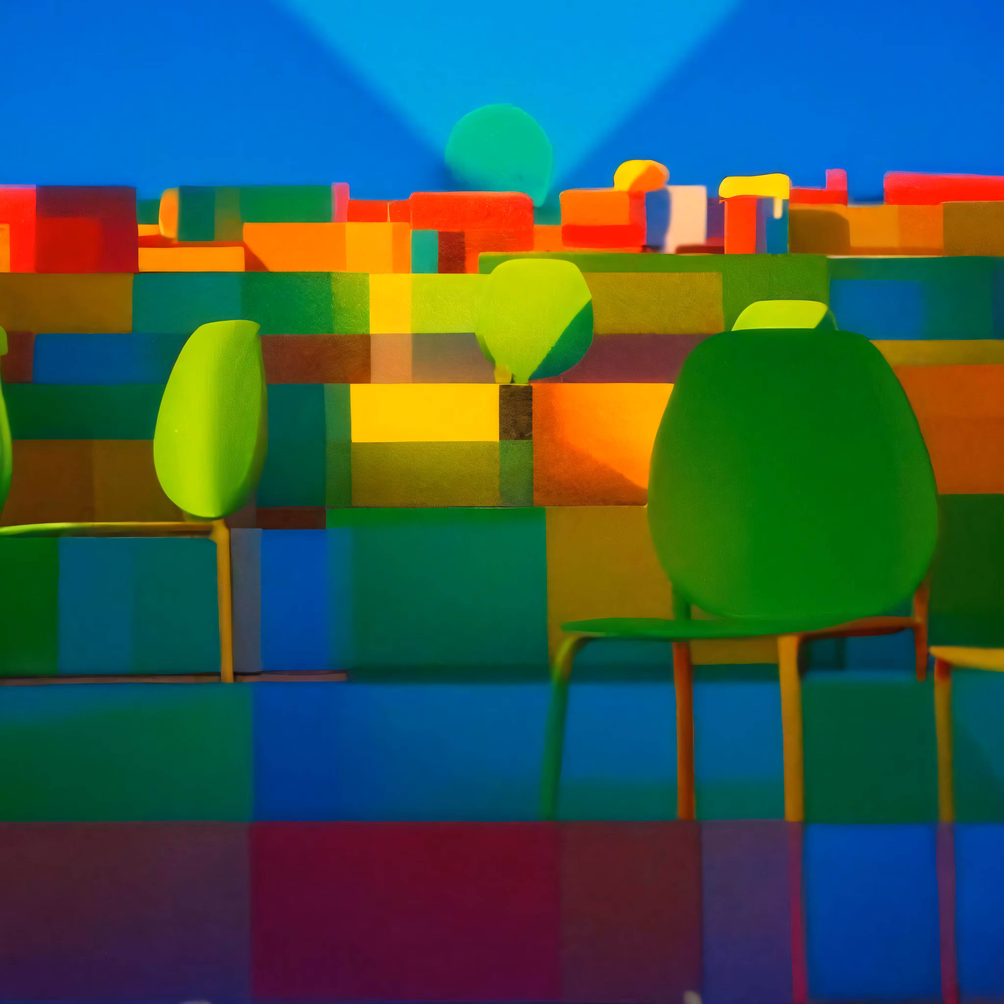 High resolution picture, free to use, an abstract painting with bright colors and different shapes