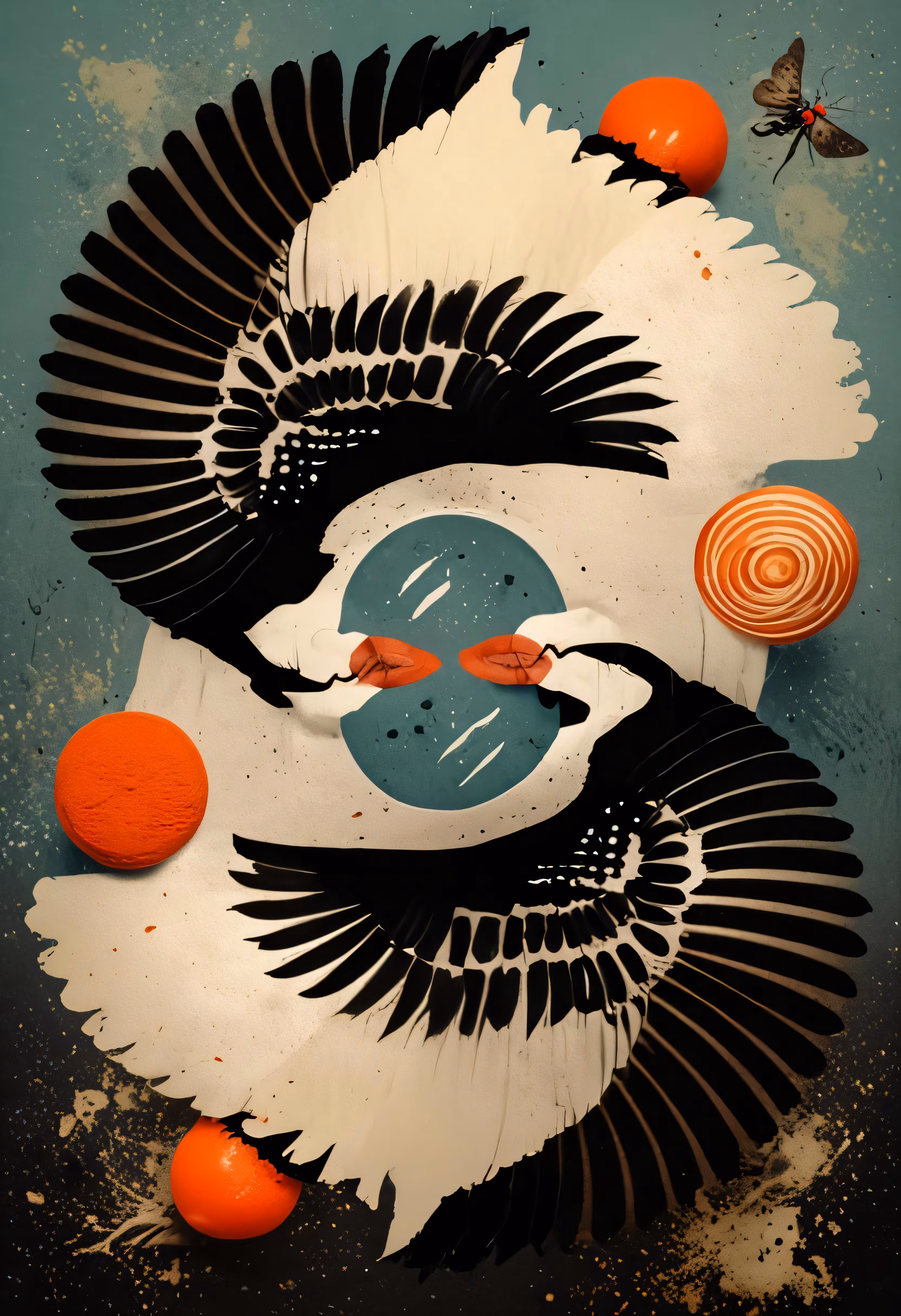 High resolution picture, free to use, an abstract piece of art depicting two birds with one orange