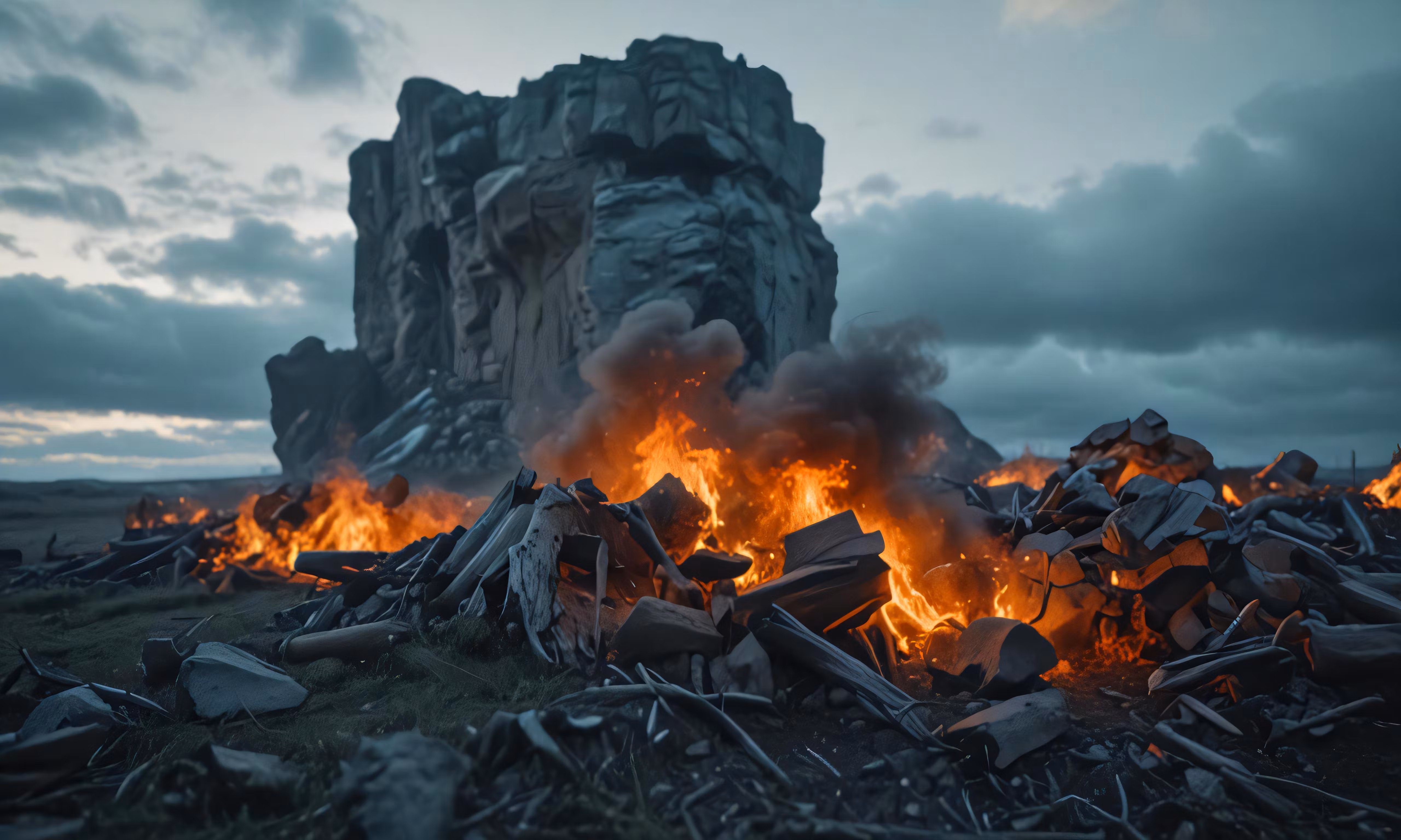 High resolution picture, free to use, an abstract scene of a pile of broken wood and rocks