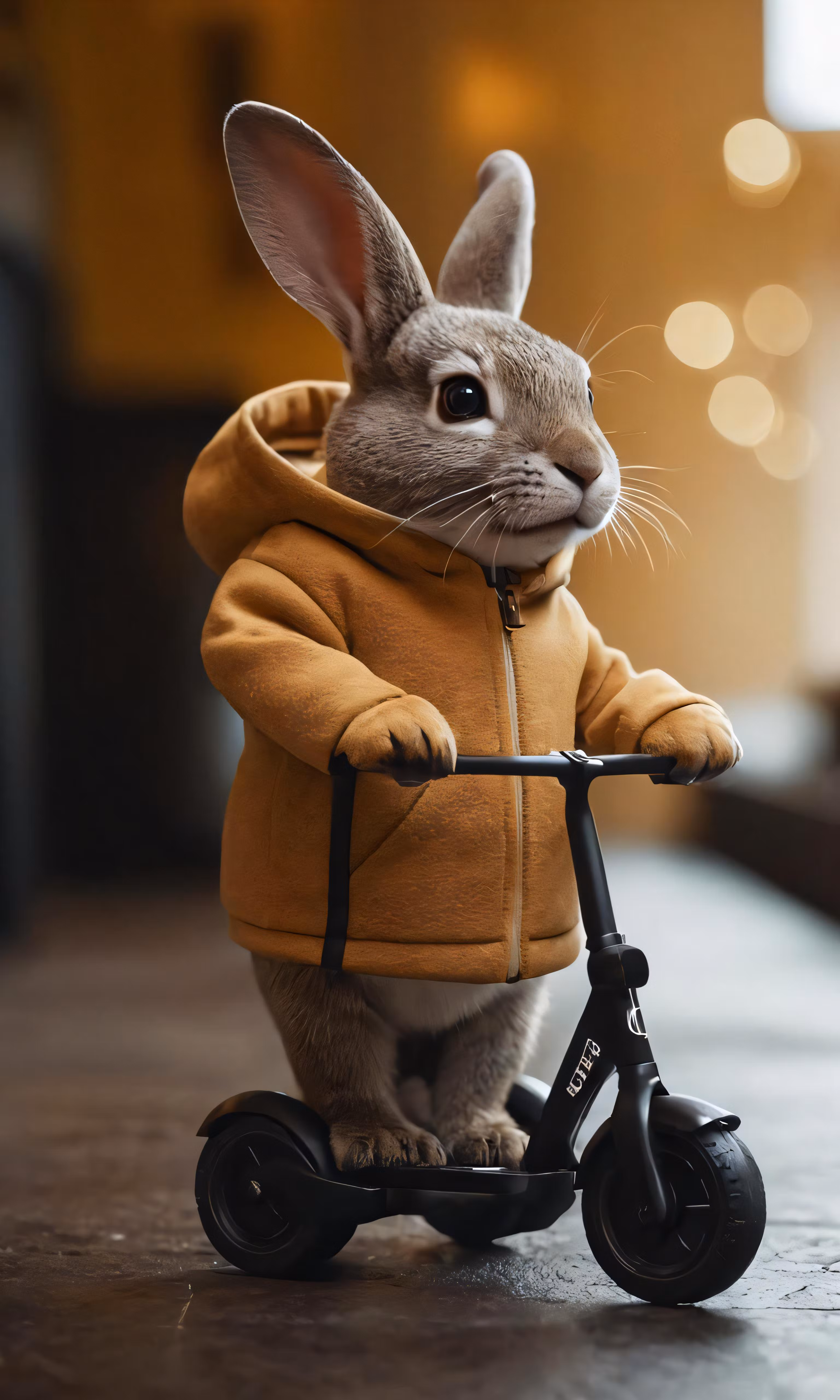 High resolution picture, free to use, an adorable bunny in yellow on a tiny tricycle