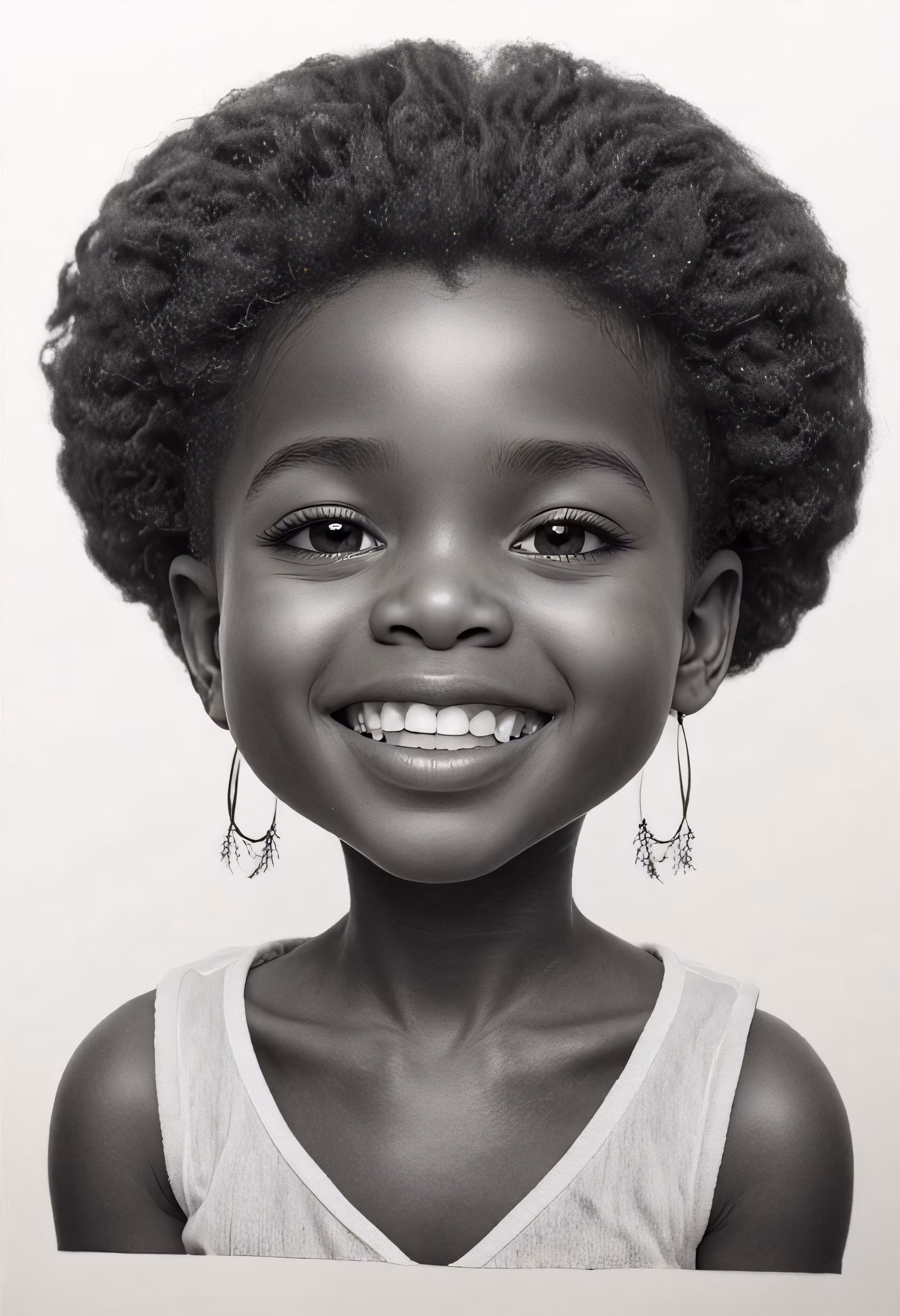 High resolution picture, free to use, an adorable little girl with short hair in black and white