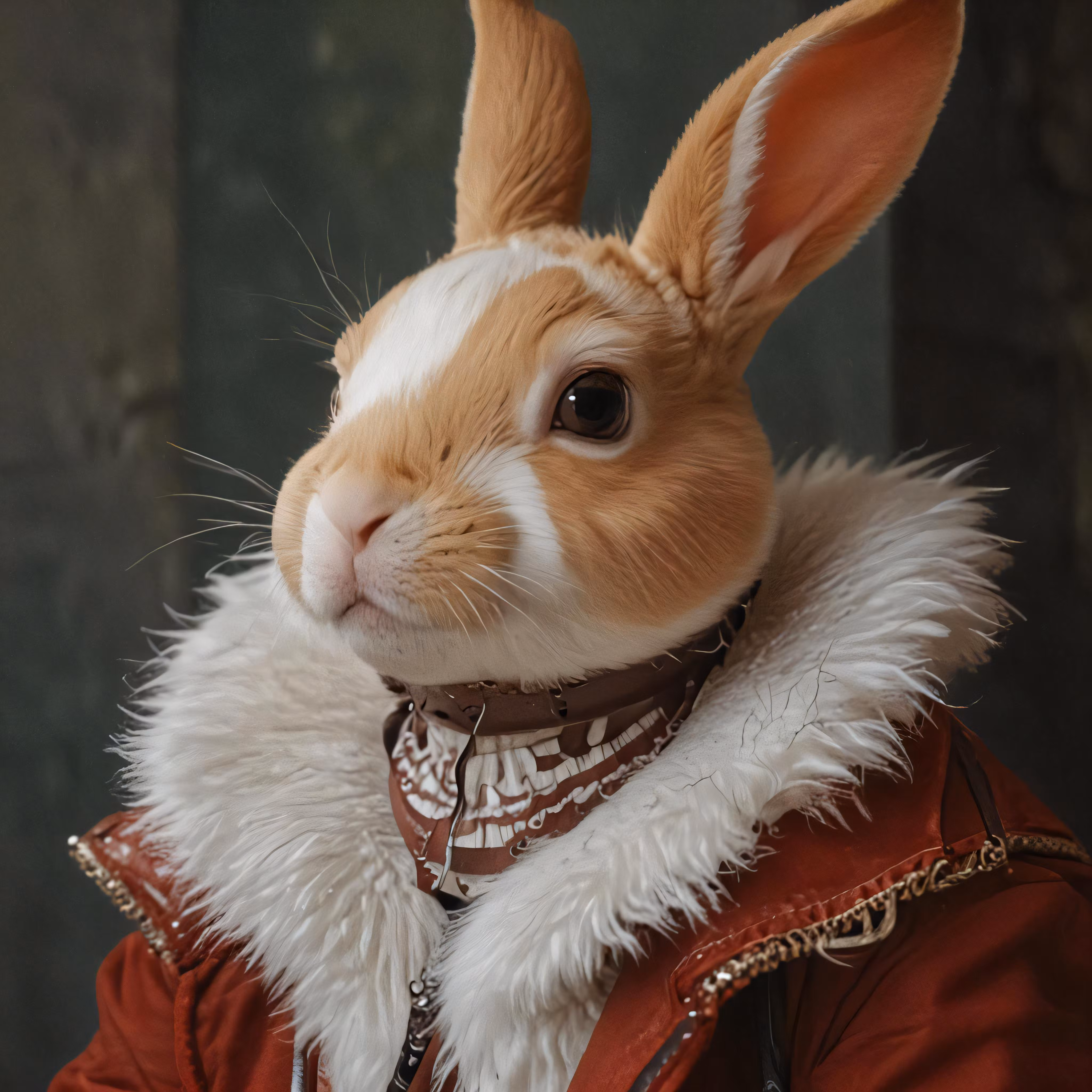 High resolution picture, free to use, an adorable rabbit dressed in winter clothes
