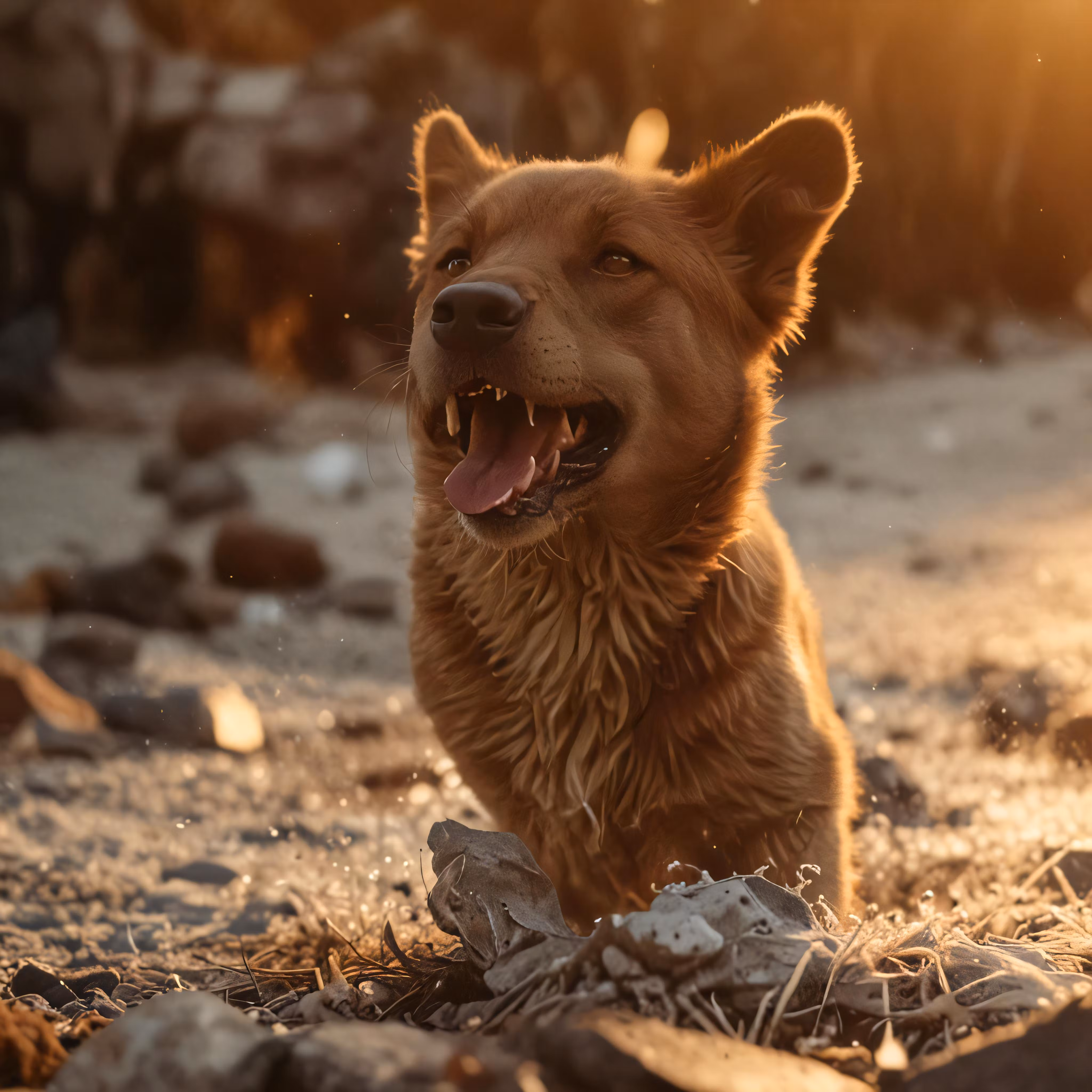 High resolution picture, free to use, an adult dog is playing outside on the ground