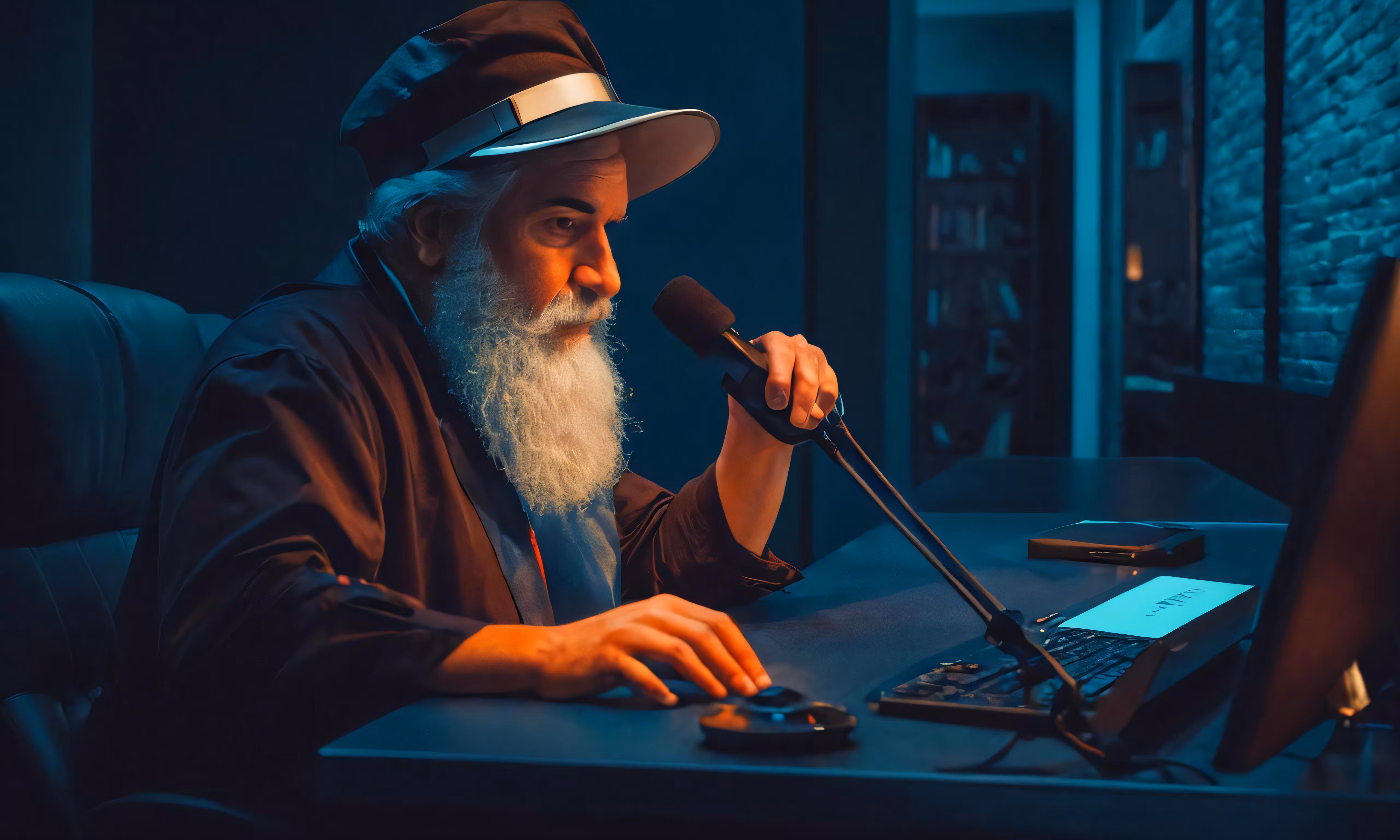 High resolution picture, free to use, an advertisement for a bicycle shop and it says 30 /a bearded man sitting at a desk working on a computer