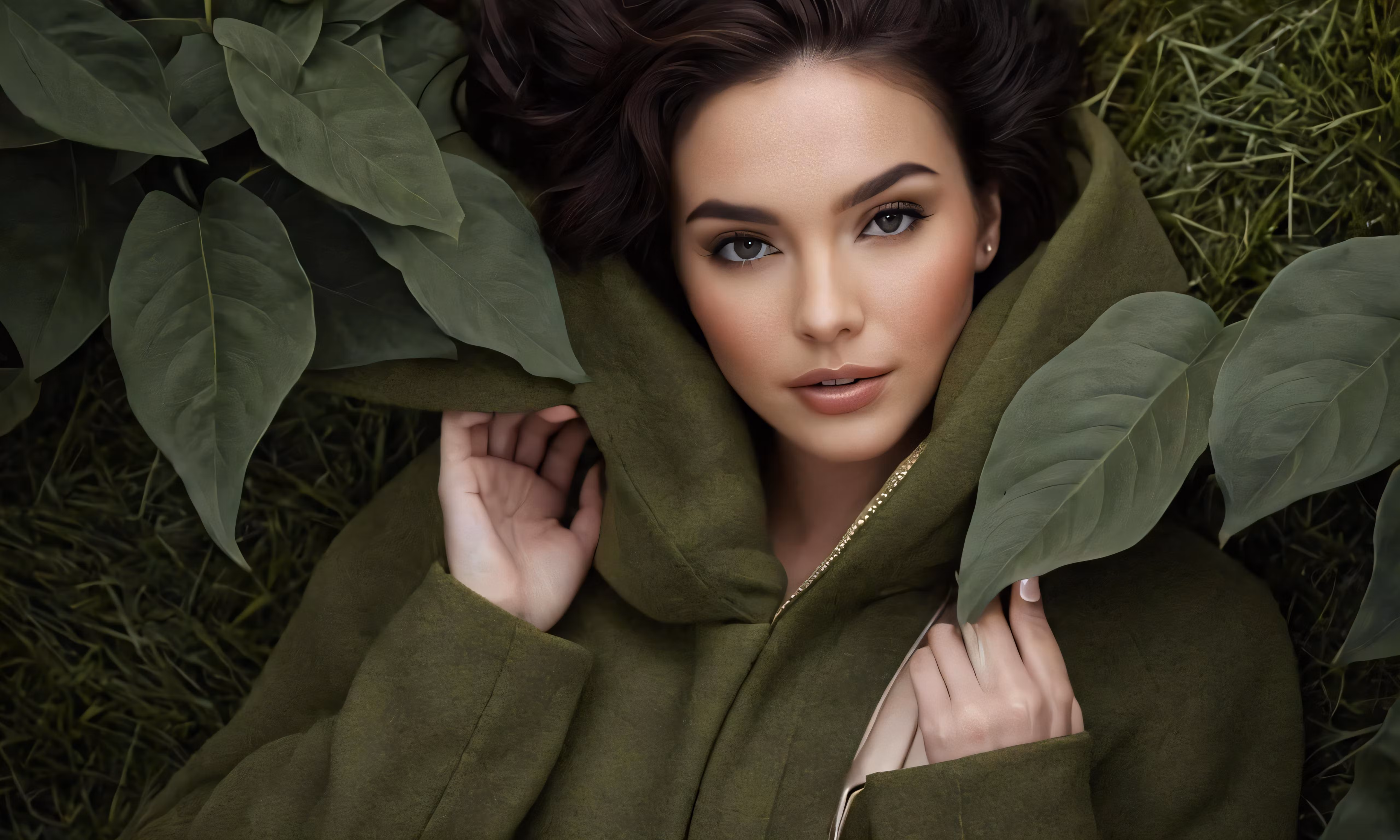 High resolution picture, free to use, an advertisement for a bicycle shop and it says 30 /a beautiful woman laying in the grass under some leaves