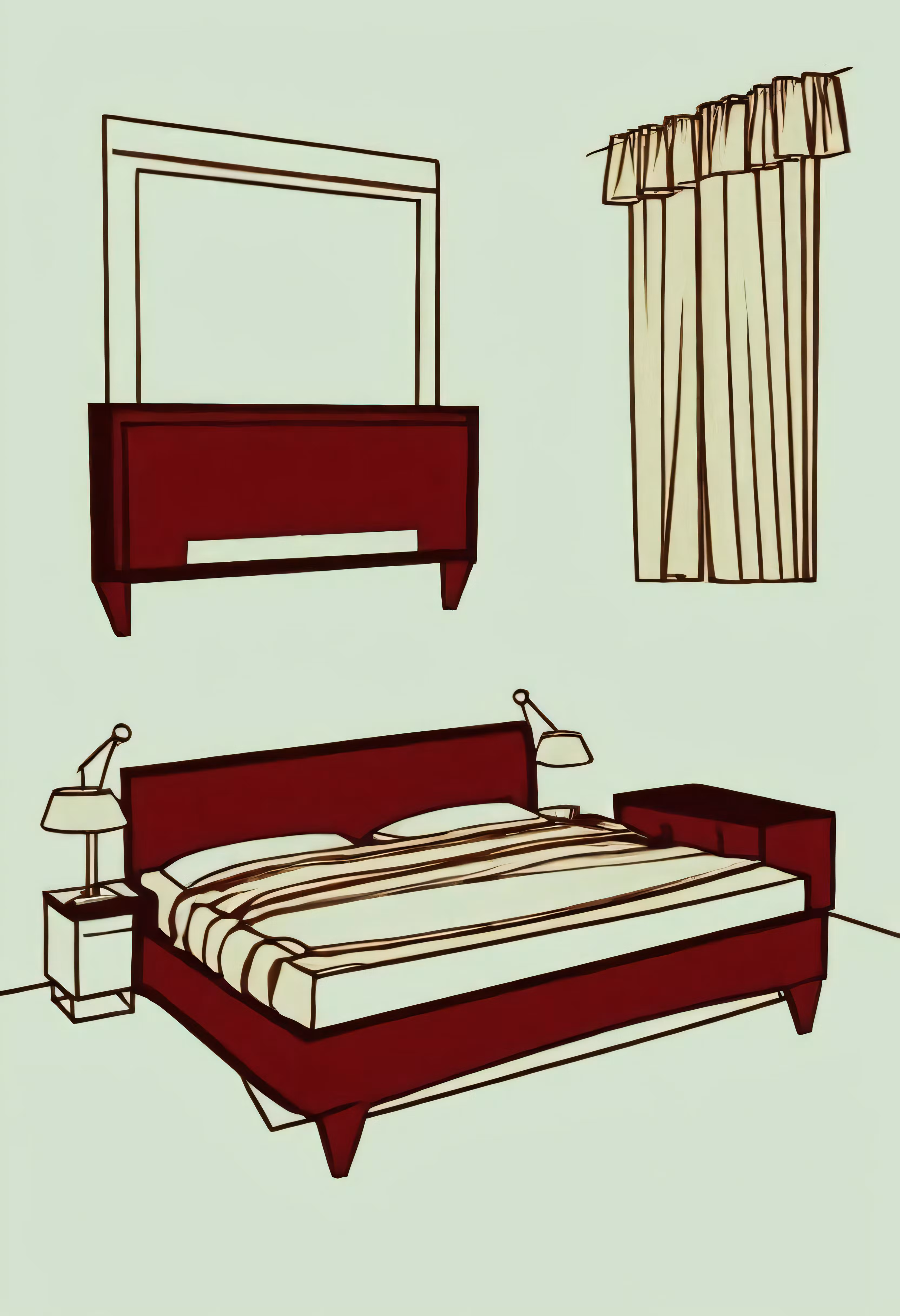 High resolution picture, free to use, an advertisement for a bicycle shop and it says 30 /a bedroom with a bed and dresser with curtains