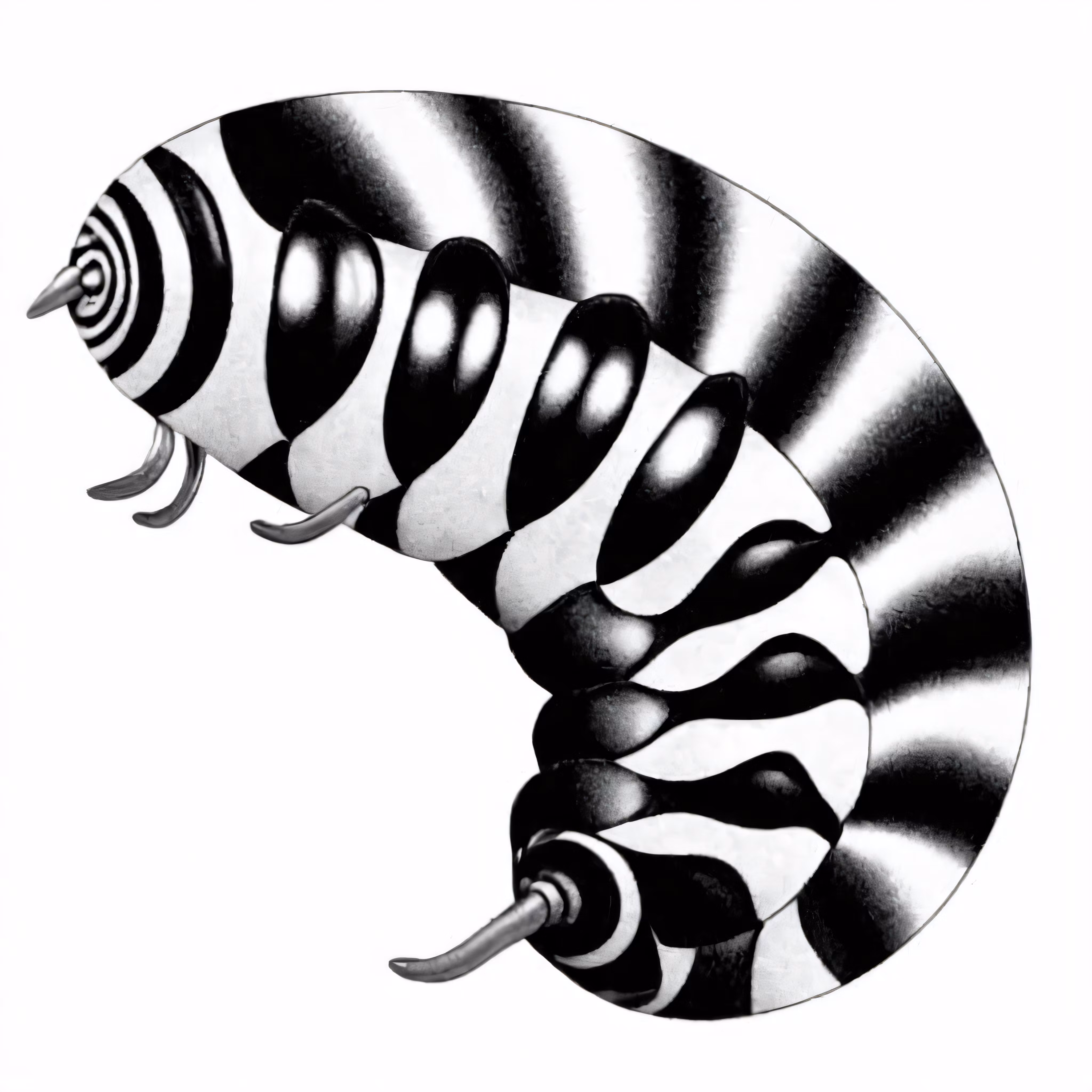 High resolution picture, free to use, an advertisement for a bicycle shop and it says 30 /a black and white caterpillar with large stripes