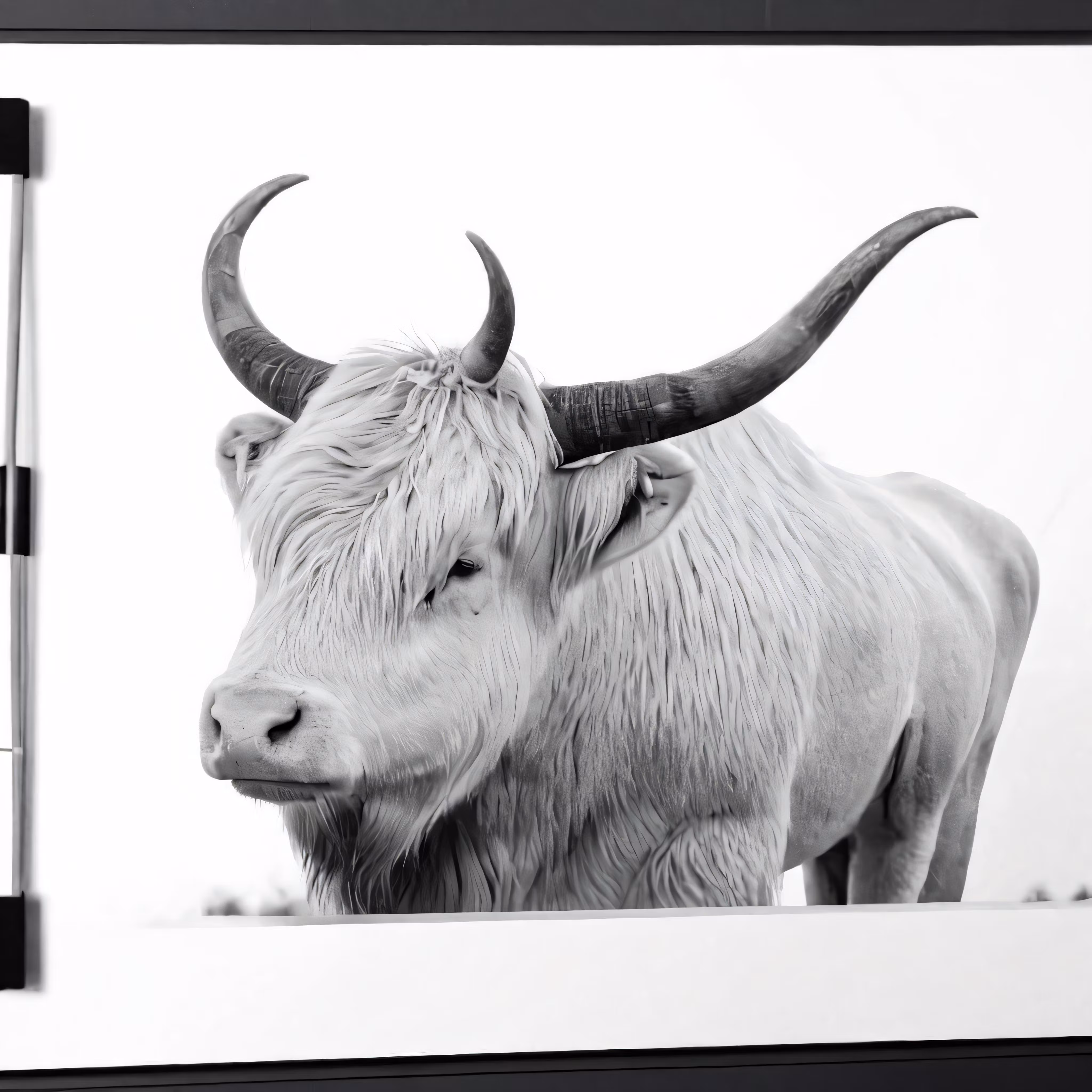 High resolution picture, free to use, an advertisement for a bicycle shop and it says 30 /a black and white photo of a bull near two markers
