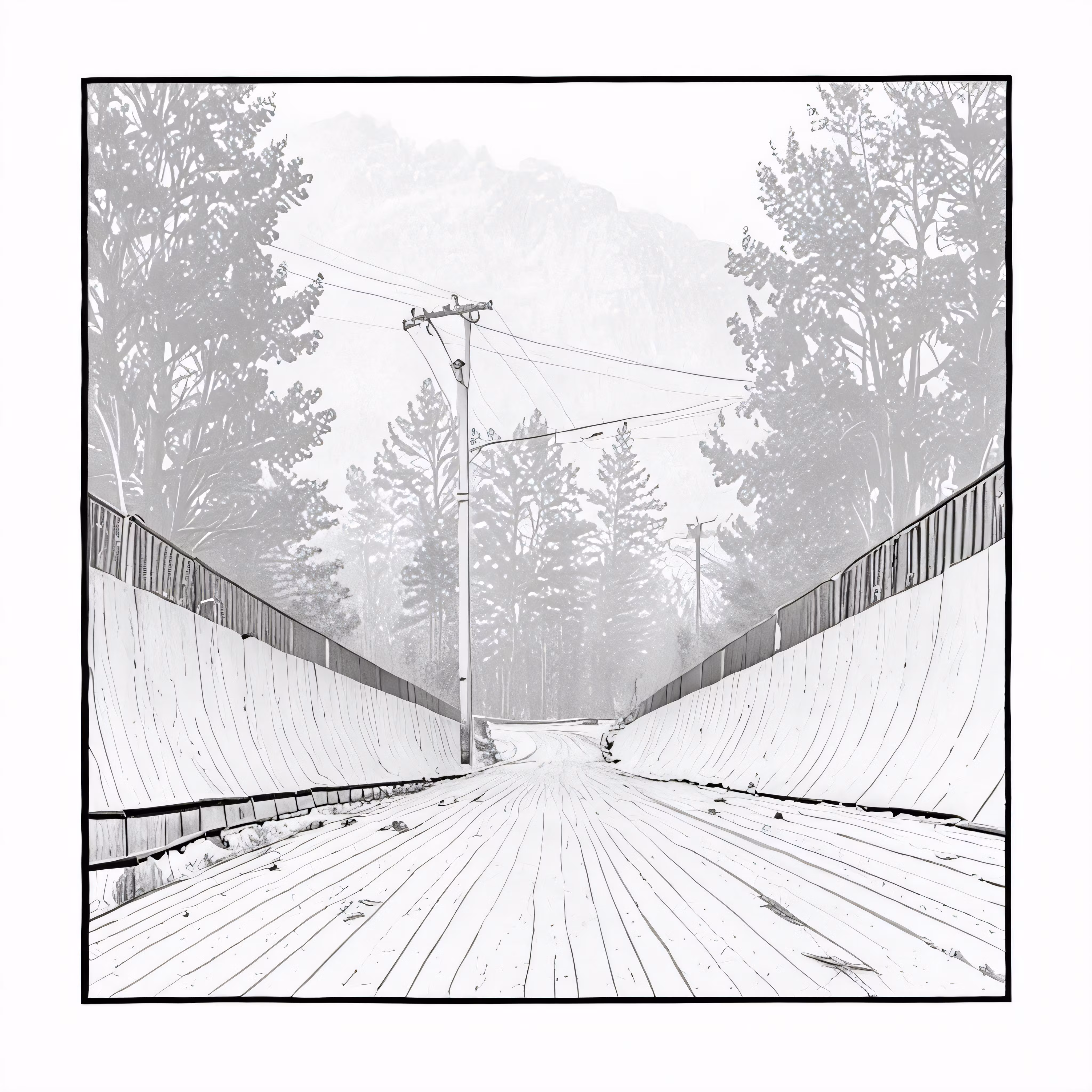 High resolution picture, free to use, an advertisement for a bicycle shop and it says 30 /a black and white photo of a snow covered walkway