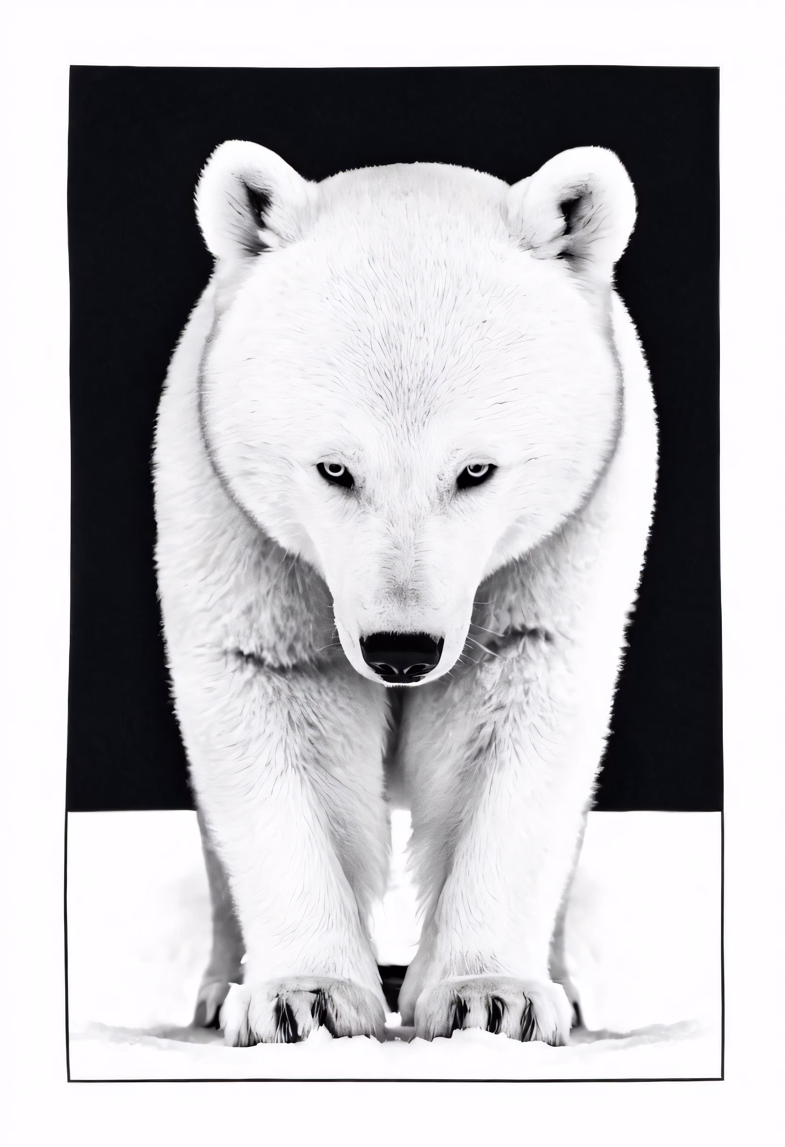 High resolution picture, free to use, an advertisement for a bicycle shop and it says 30 /a black and white photograph of a polar bear looking at something