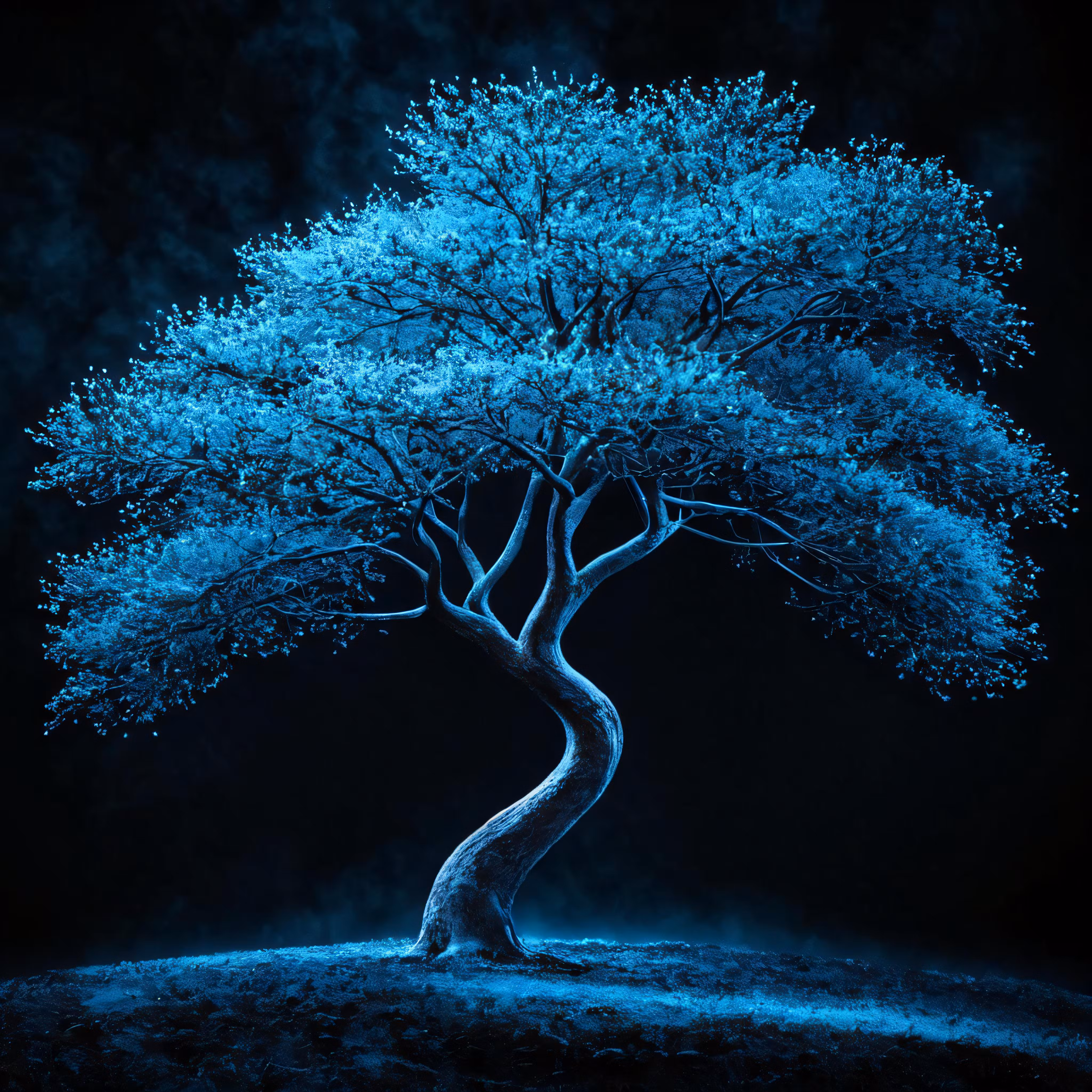 High resolution picture, free to use, an advertisement for a bicycle shop and it says 30 /a blue tree in the dark and its branches glowing