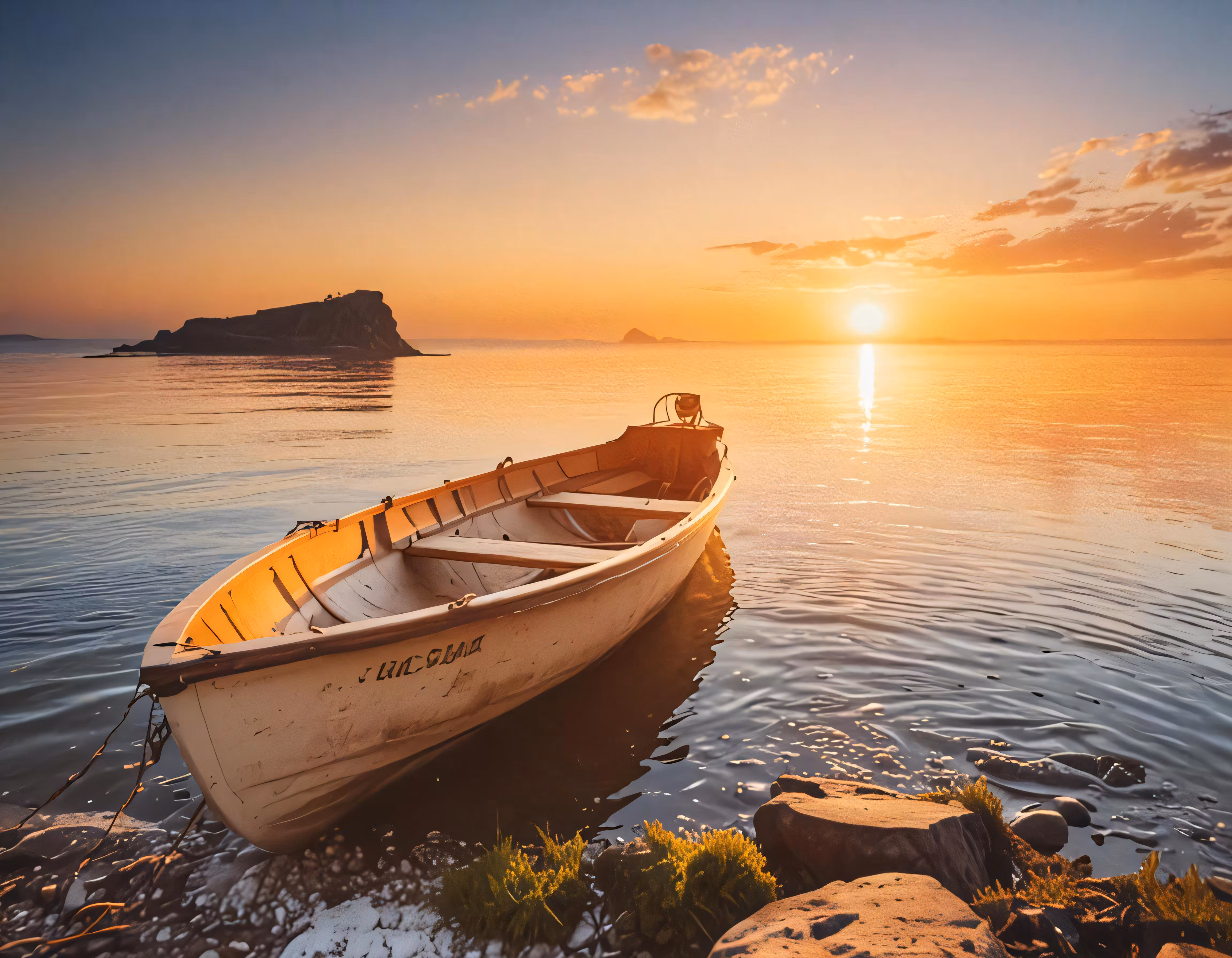 High resolution picture, free to use, an advertisement for a bicycle shop and it says 30 /a boat is sitting on a lake with the sun setting