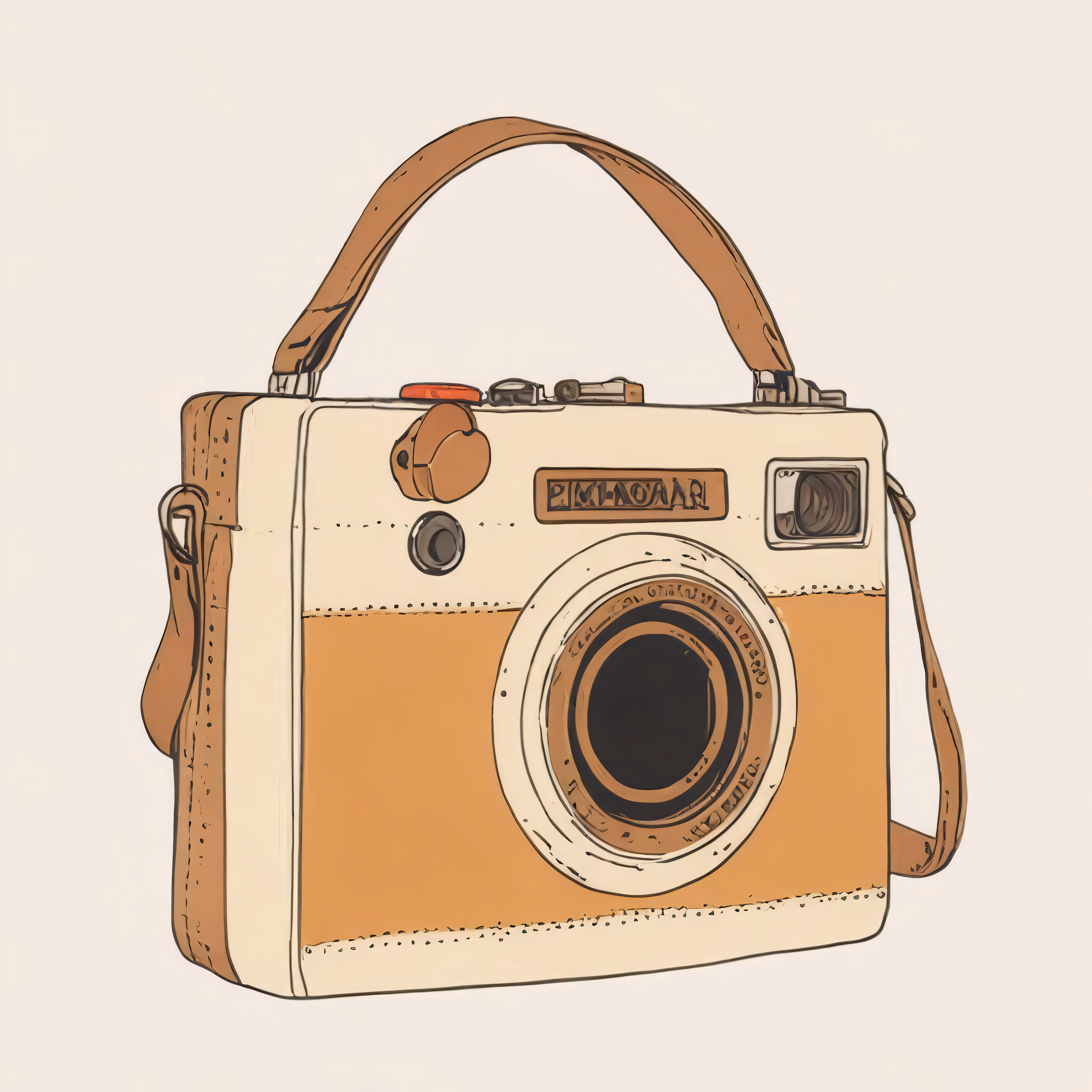High resolution picture, free to use, an advertisement for a bicycle shop and it says 30 /a brown and beige camera with a leather case