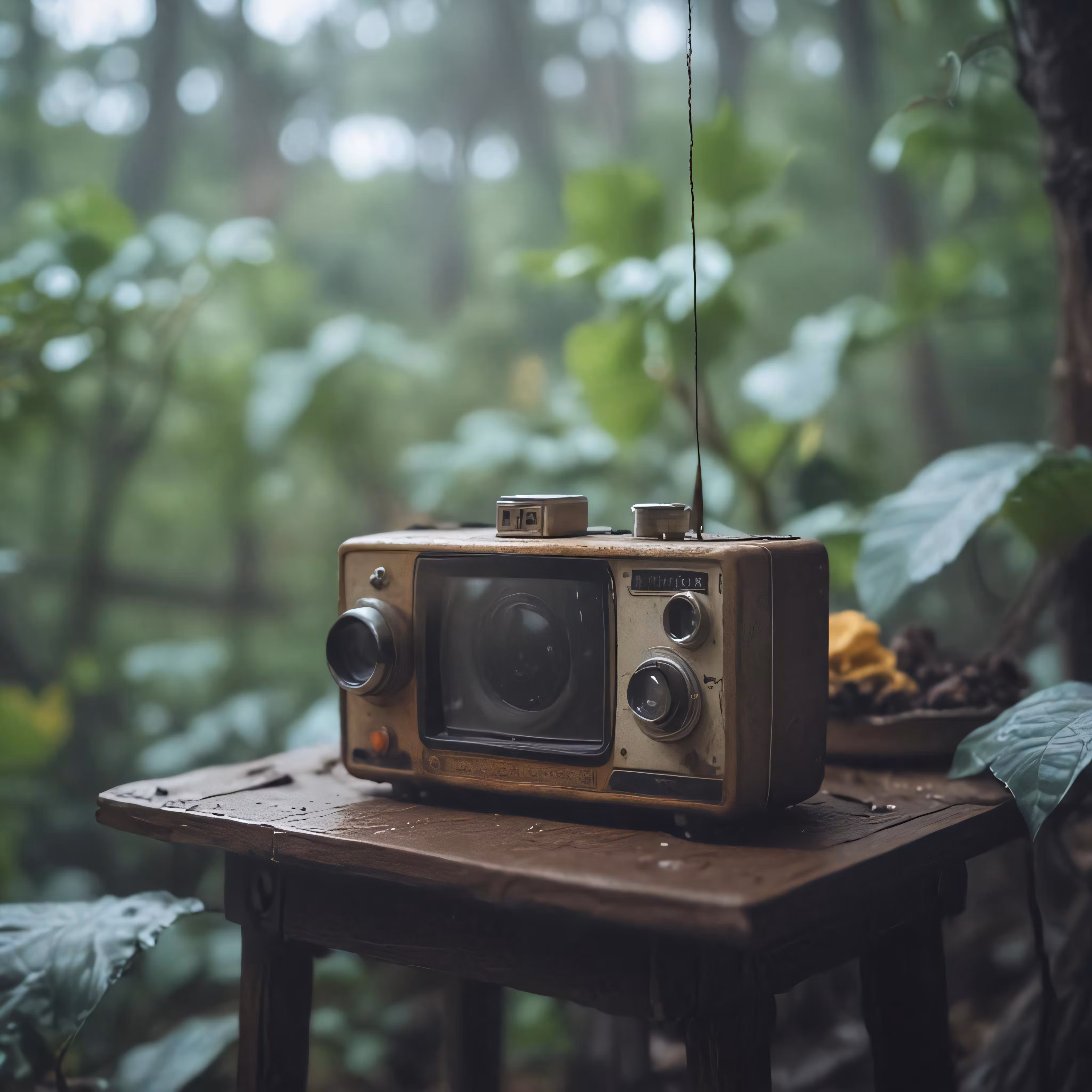 High resolution picture, free to use, an advertisement for a bicycle shop and it says 30 /a brown vintage tv set sitting on a wooden table in a forest