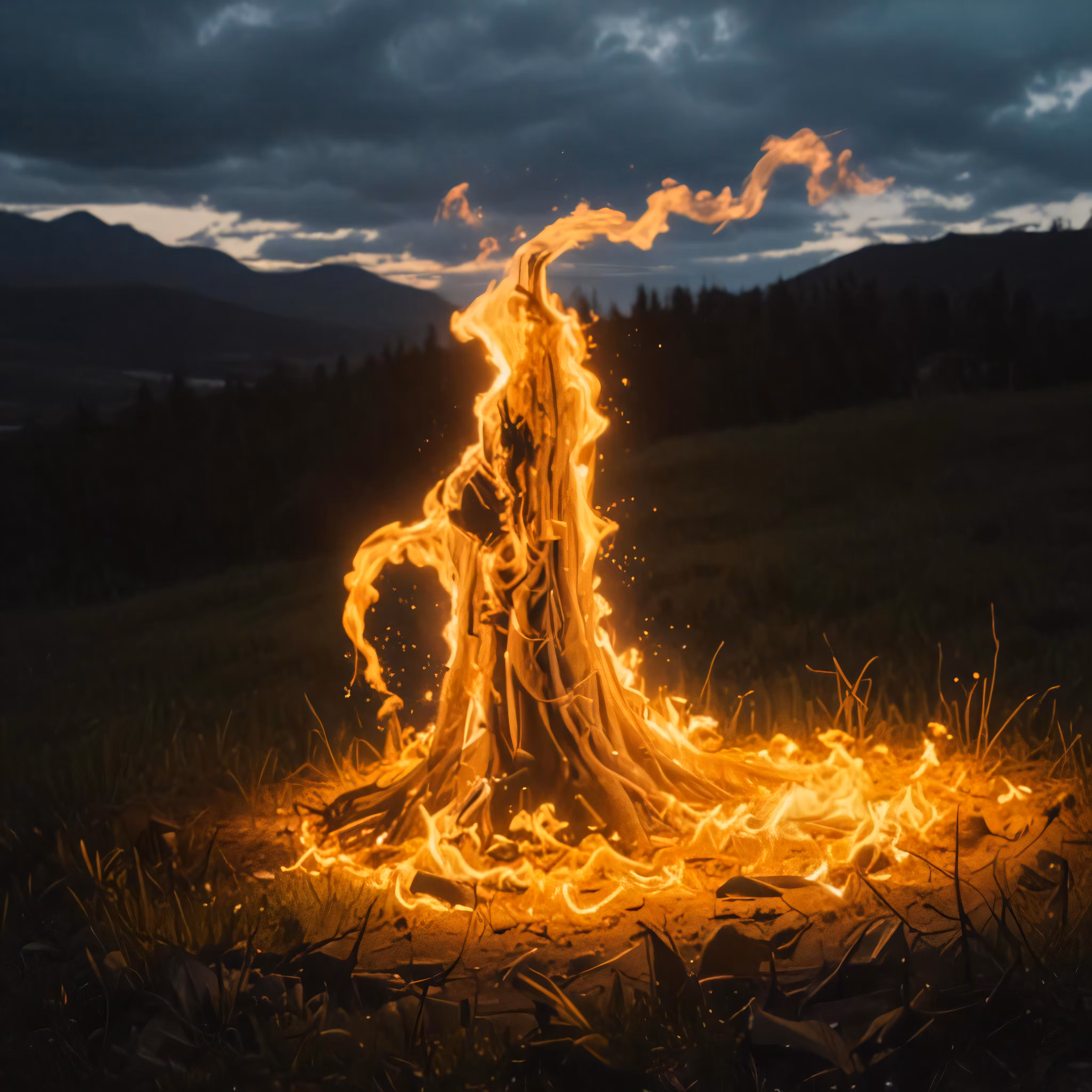 High resolution picture, free to use, an advertisement for a bicycle shop and it says 30 /a burning tree stump in the middle of a field