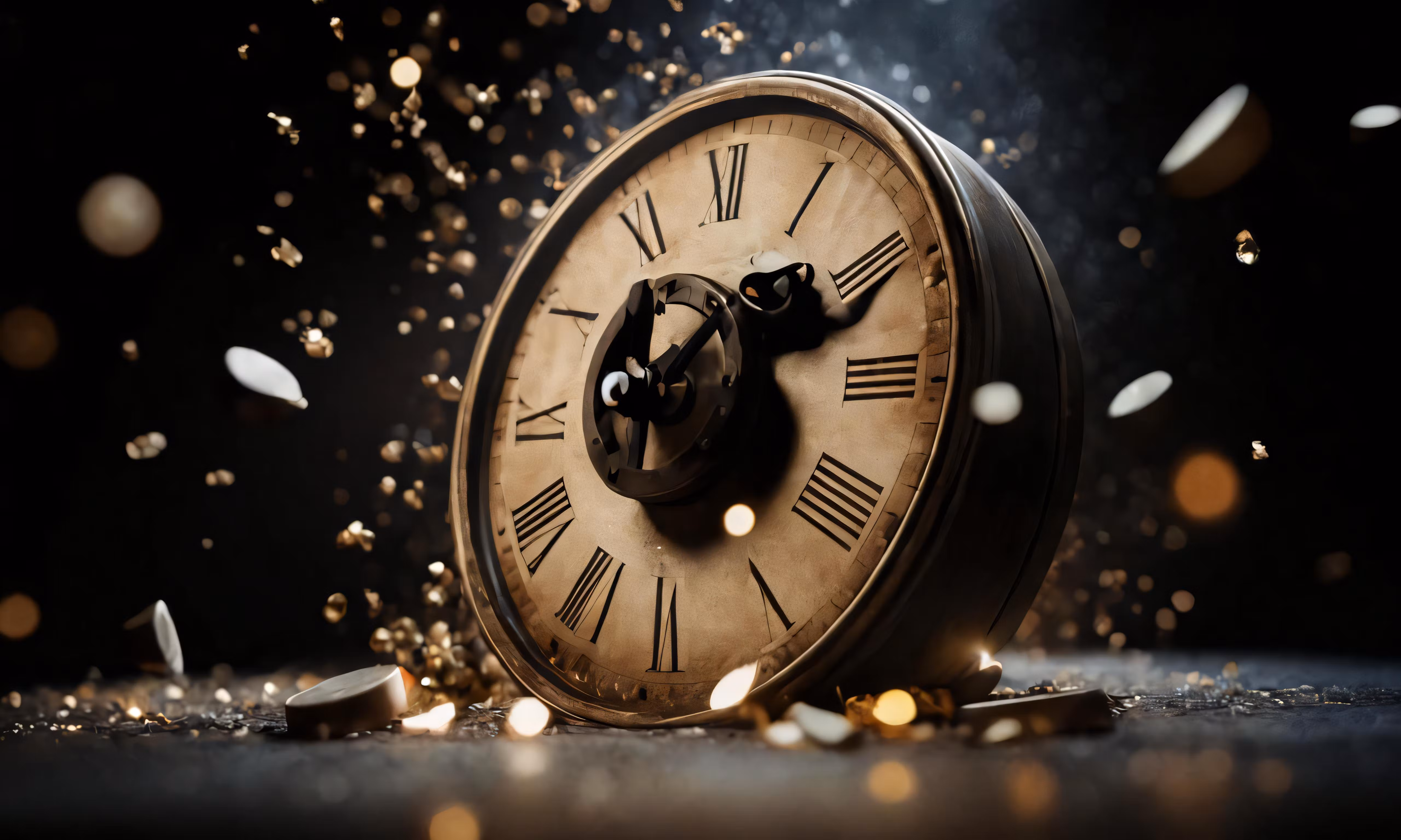 High resolution picture, free to use, an advertisement for a bicycle shop and it says 30 /a clock that is broken is being watched