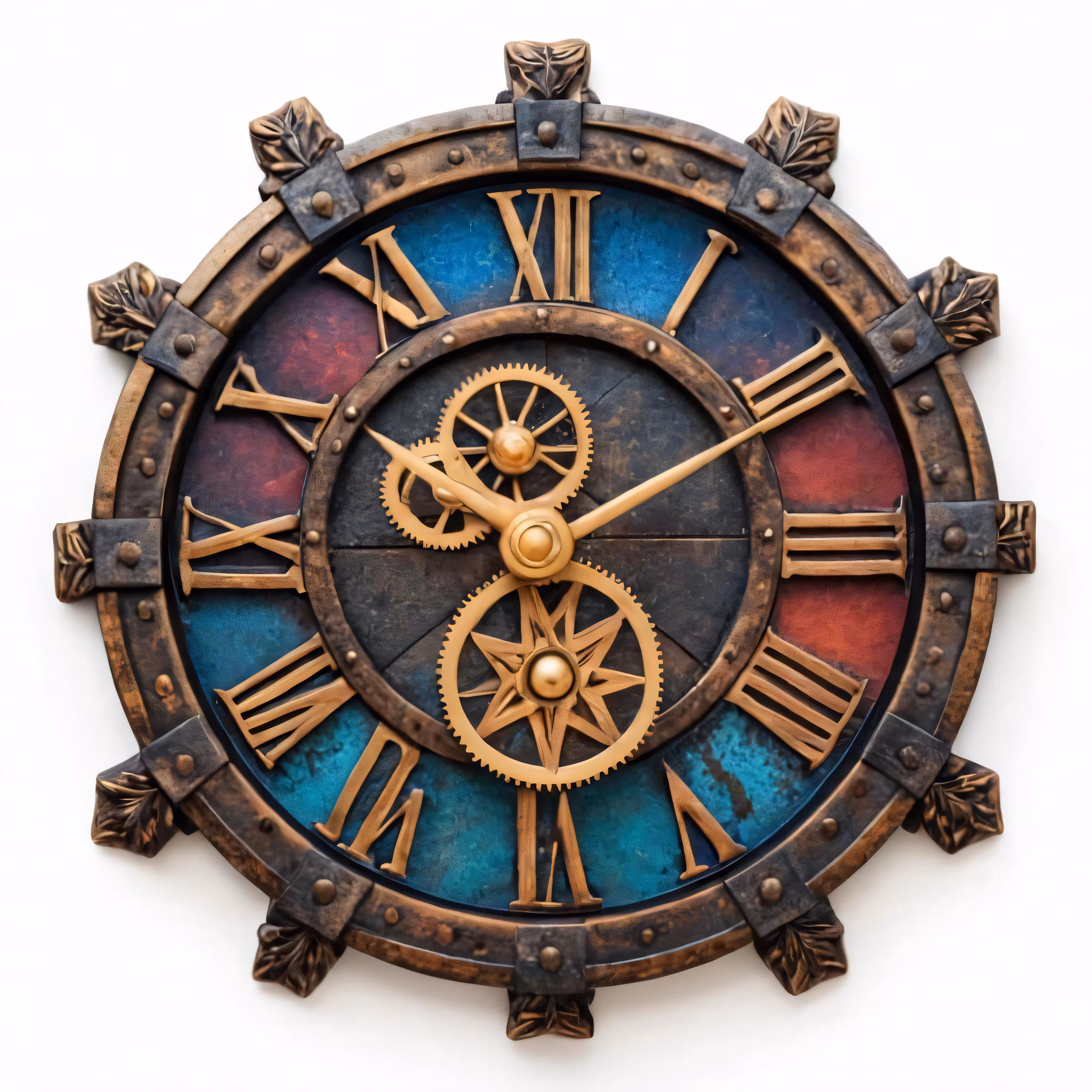 High resolution picture, free to use, an advertisement for a bicycle shop and it says 30 /a clock with a mechanical mechanism showing how many hours go around