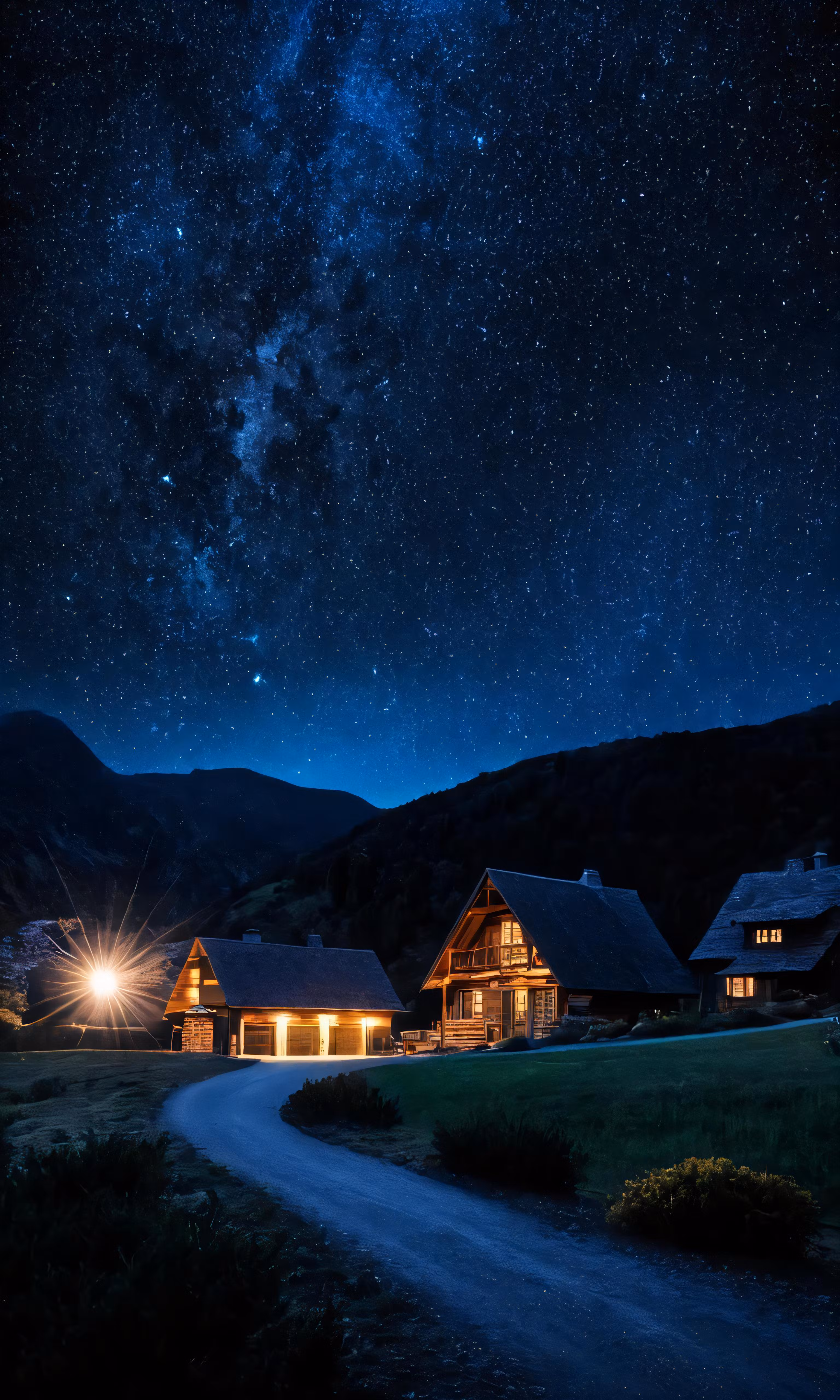 High resolution picture, free to use, an advertisement for a bicycle shop and it says 30 /a country road is illuminated by bright lights at night