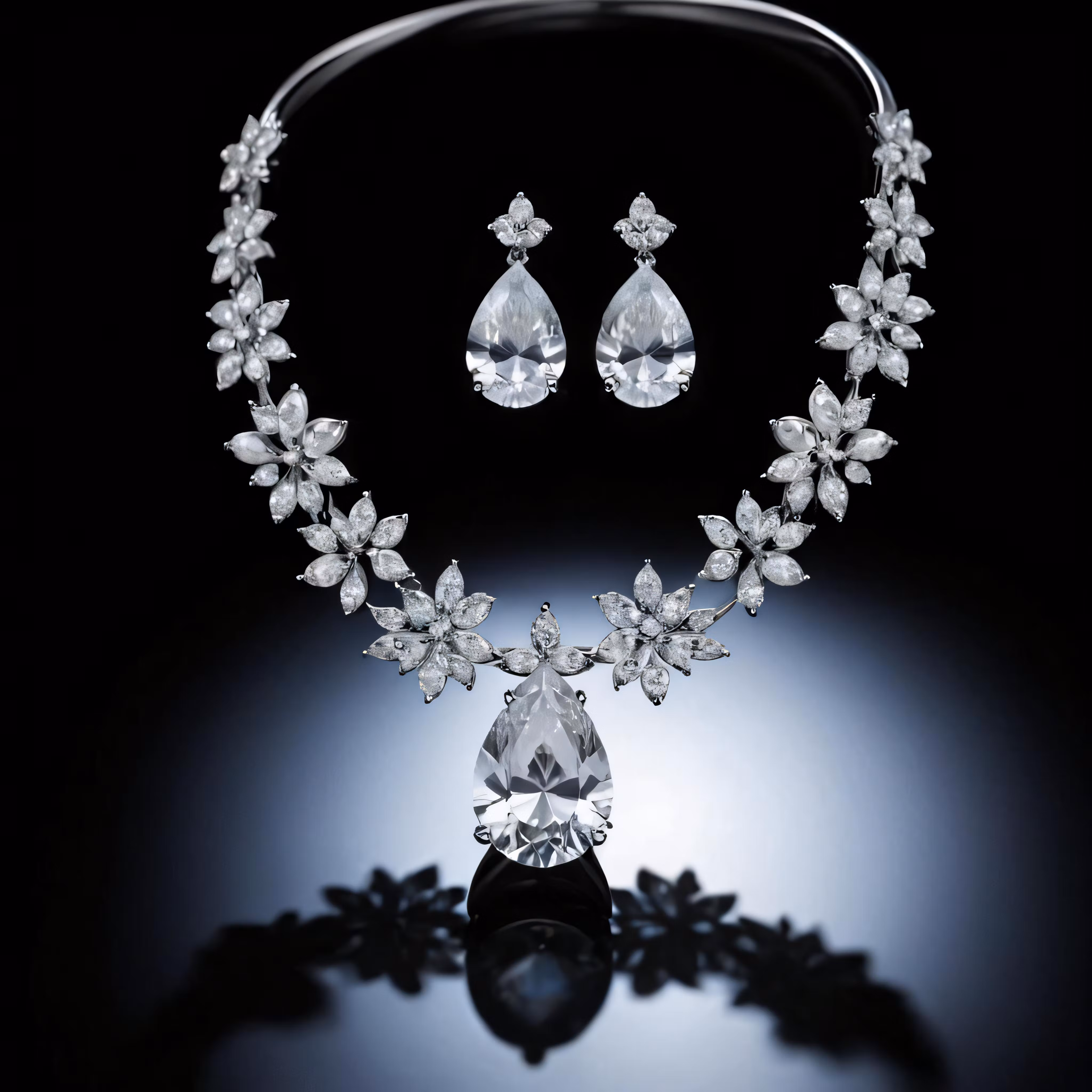 High resolution picture, free to use, an advertisement for a bicycle shop and it says 30 /a crystal necklace and earrings are seen on a dark surface