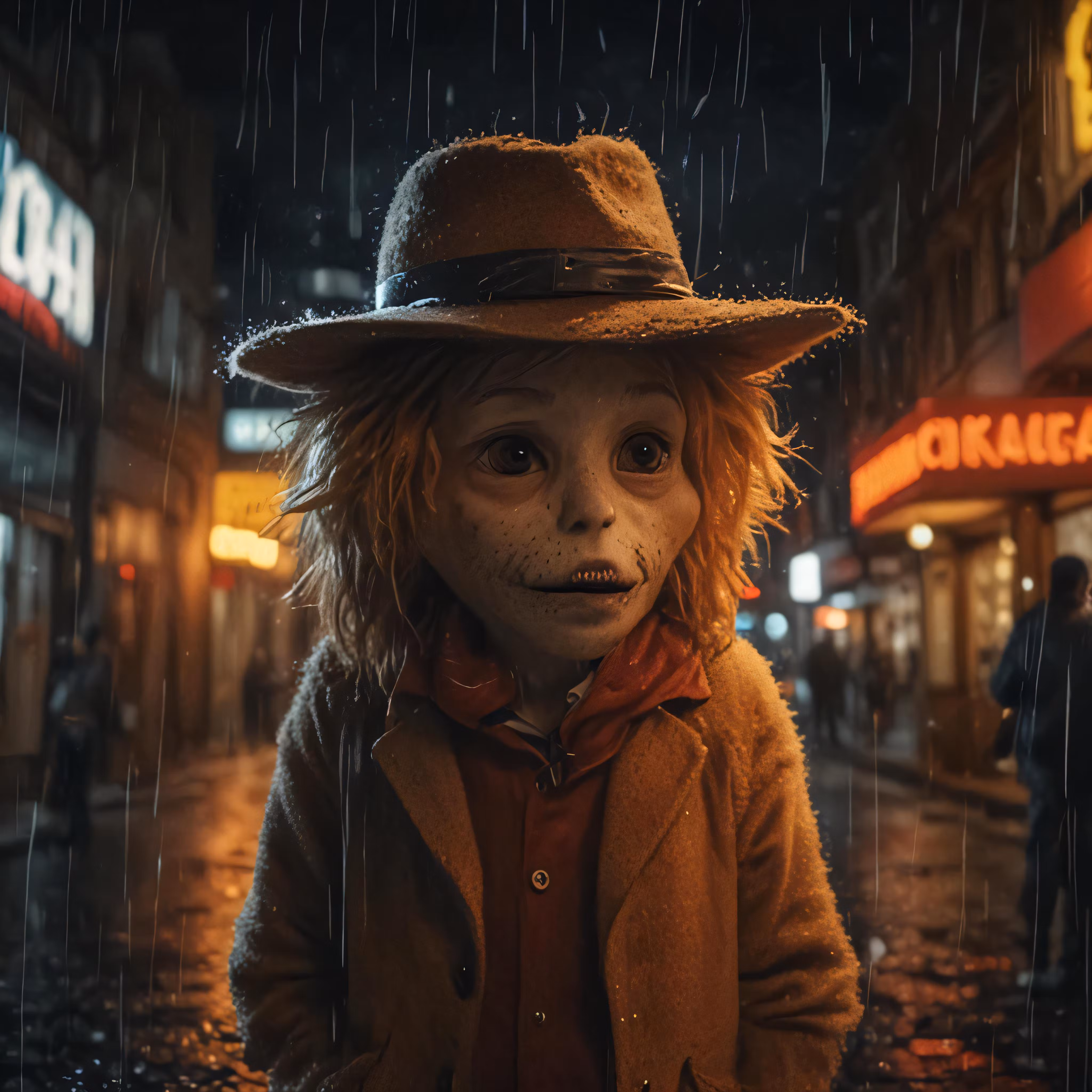 High resolution picture, free to use, an advertisement for a bicycle shop and it says 30 /a doll is standing in the rain outside