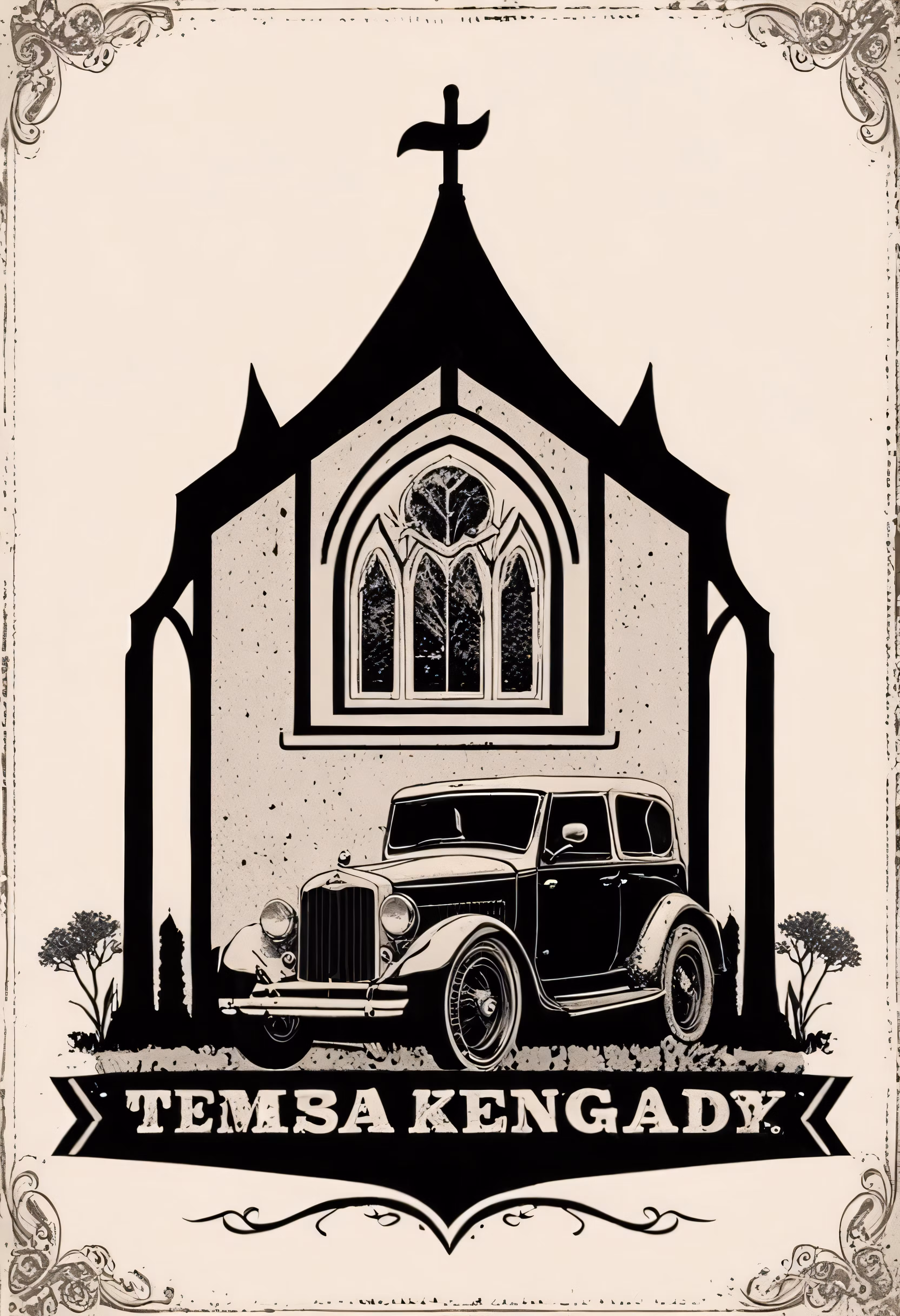 High resolution picture, free to use, an advertisement for a bicycle shop and it says 30 /a drawing of a car in front of a church