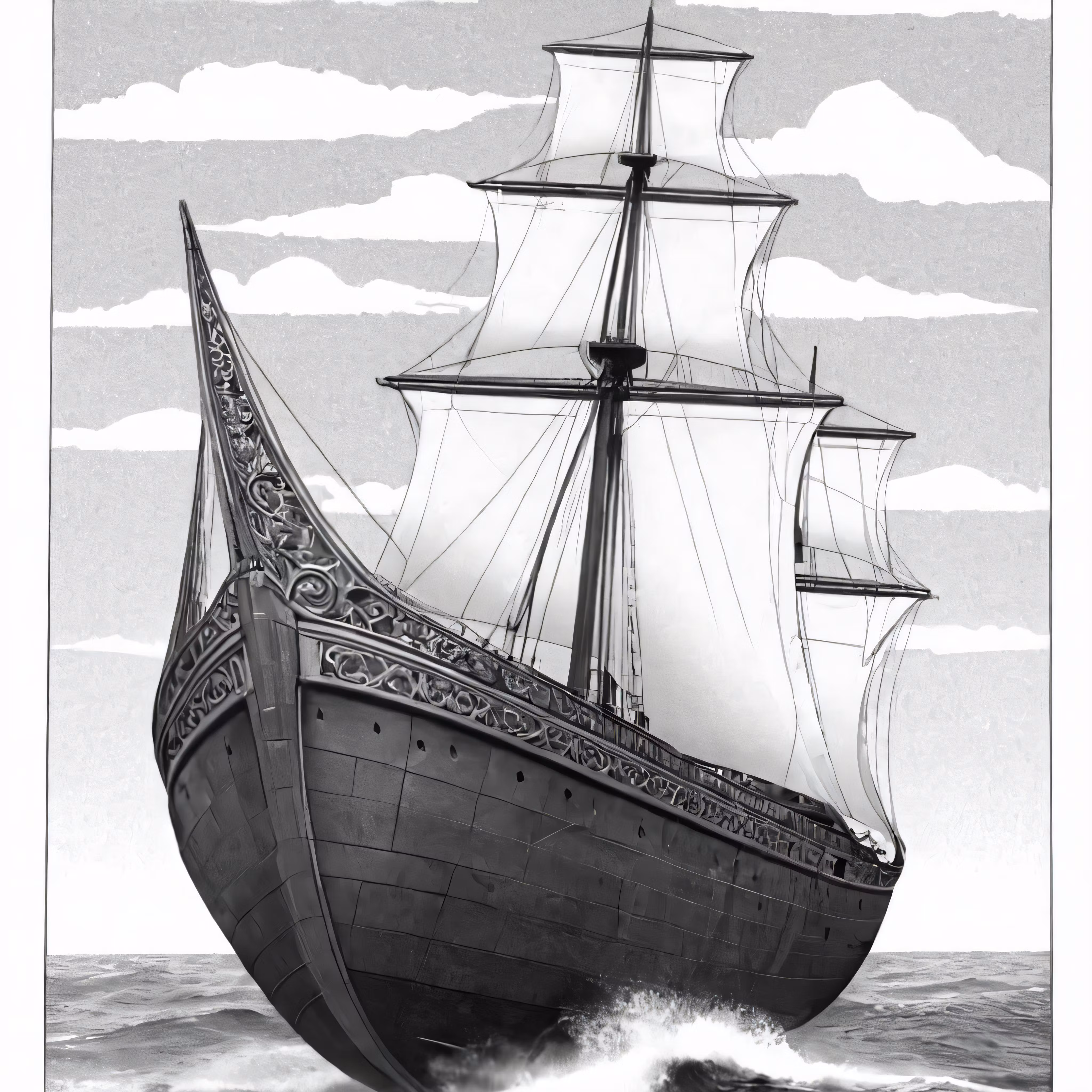 High resolution picture, free to use, an advertisement for a bicycle shop and it says 30 /a drawing of a large sailboat in rough waves