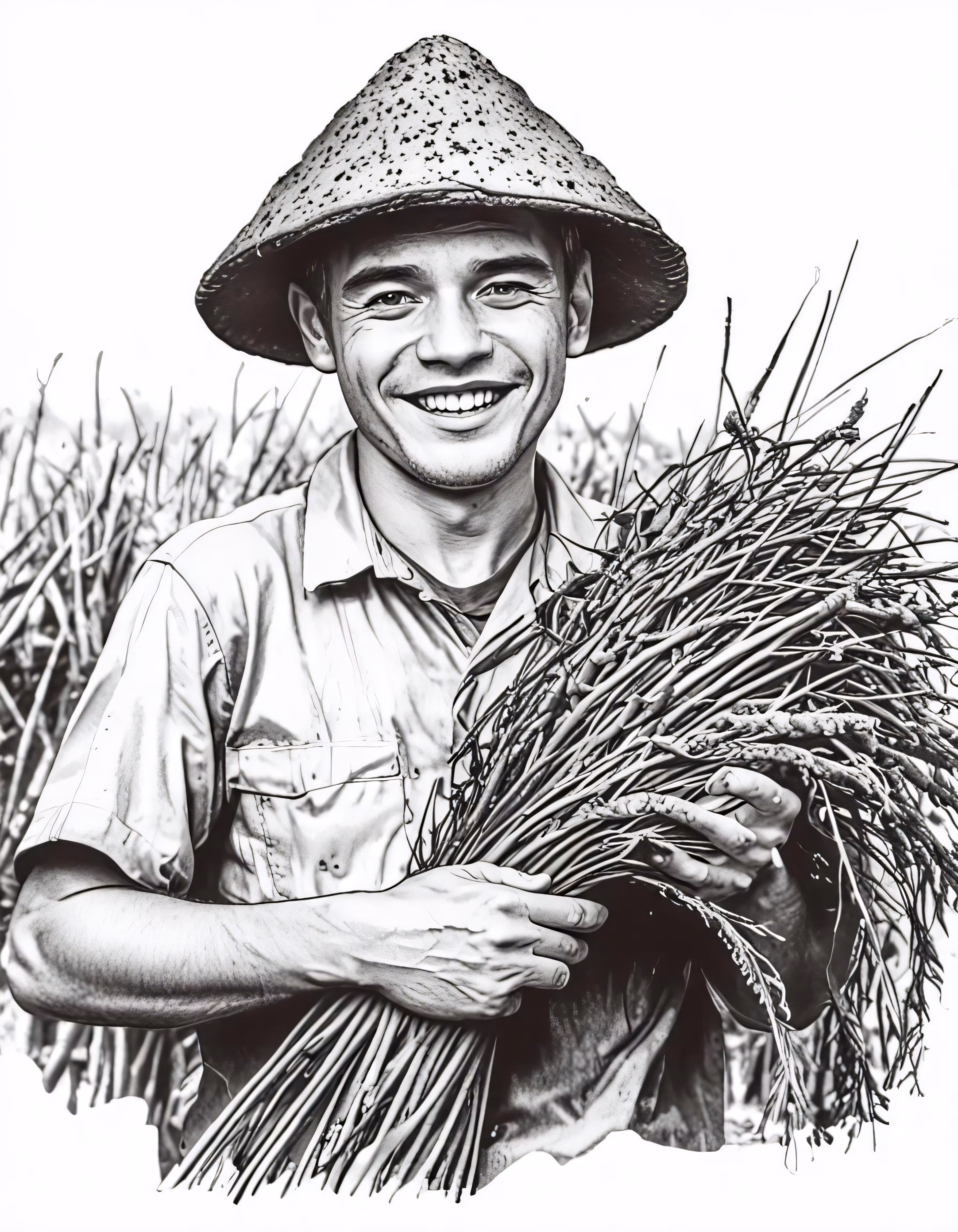 High resolution picture, free to use, an advertisement for a bicycle shop and it says 30 /a farmer is holding a bunch of grass