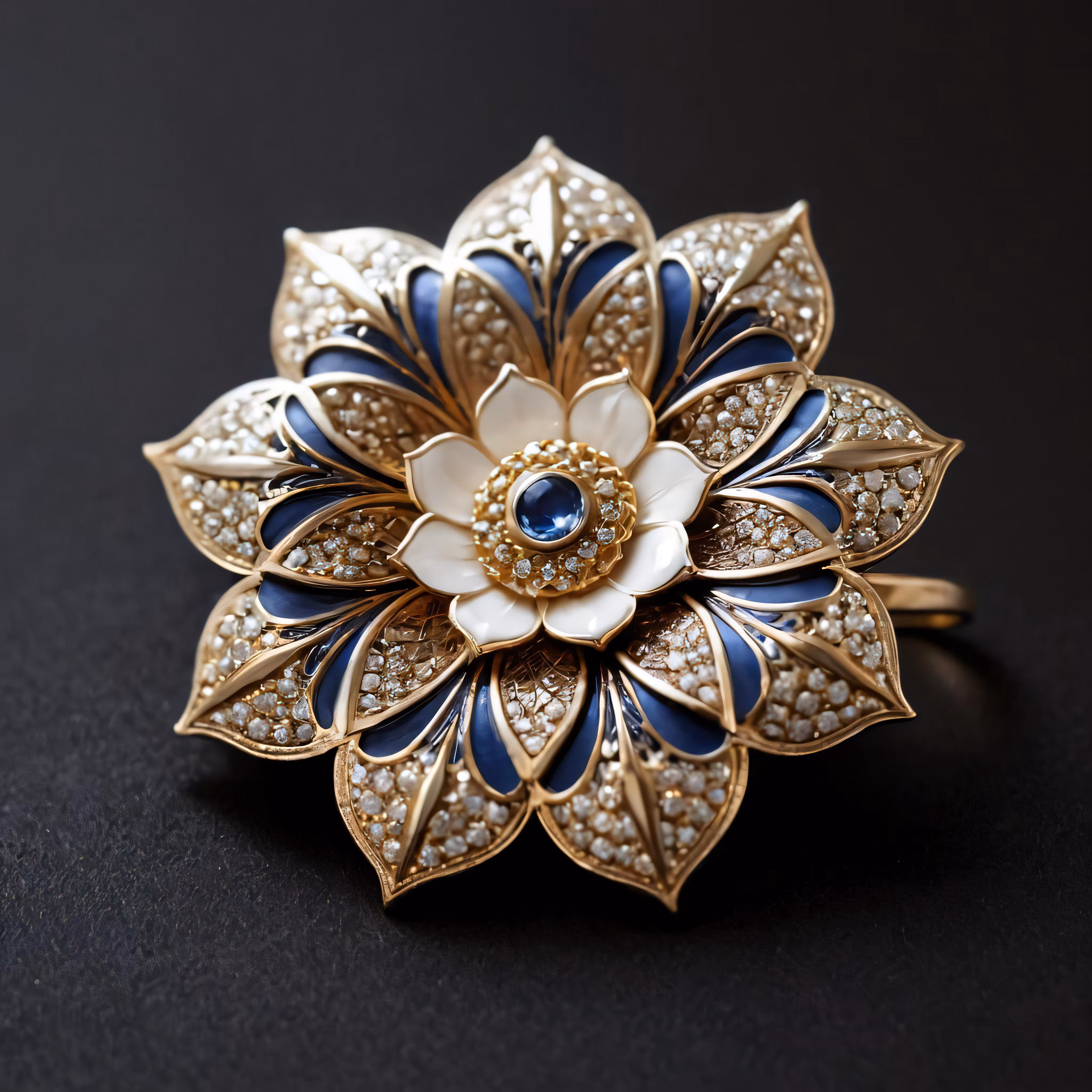 High resolution picture, free to use, an advertisement for a bicycle shop and it says 30 /a flower brooch with stones on it