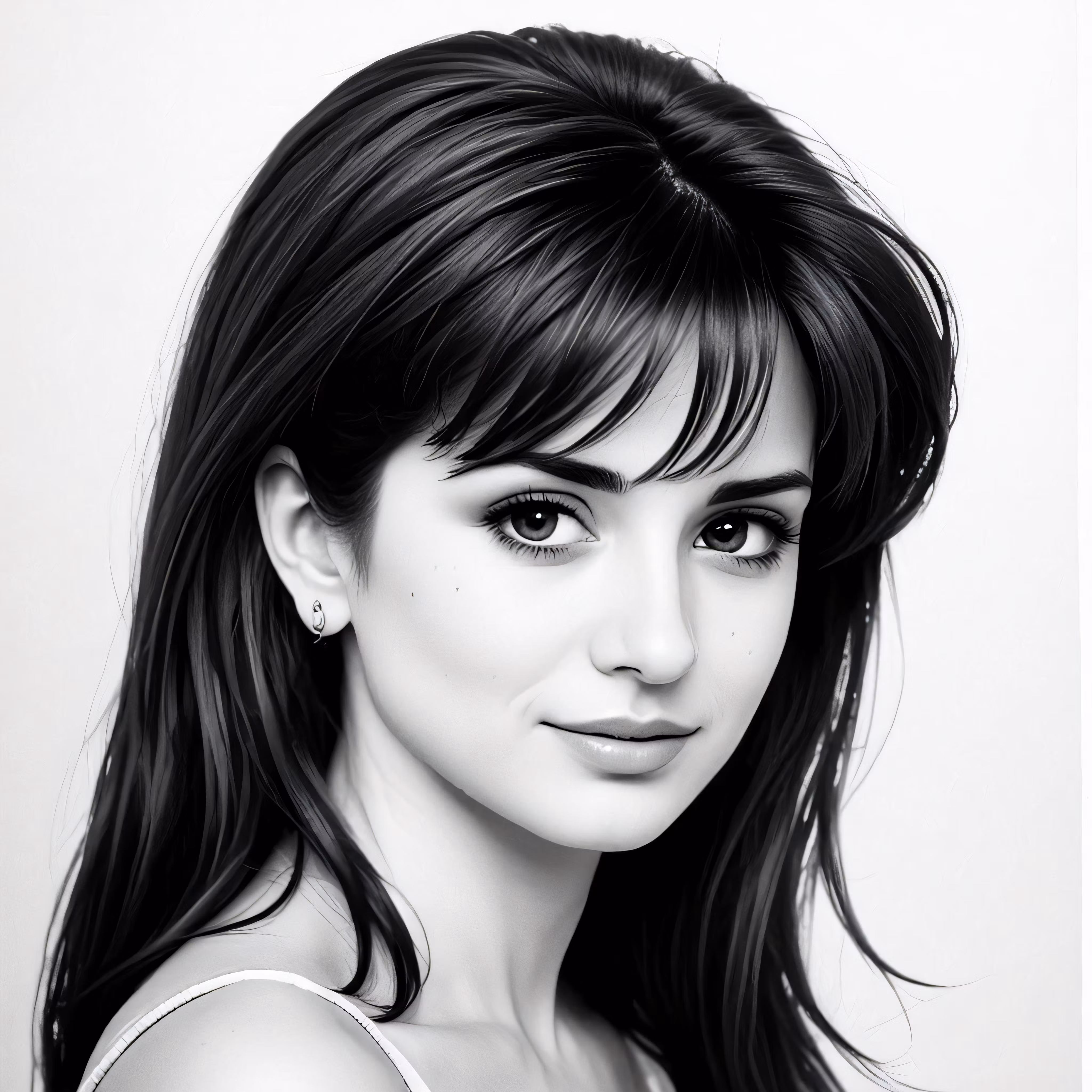 High resolution picture, free to use, an advertisement for a bicycle shop and it says 30 /a girl with long hair is shown in black and white