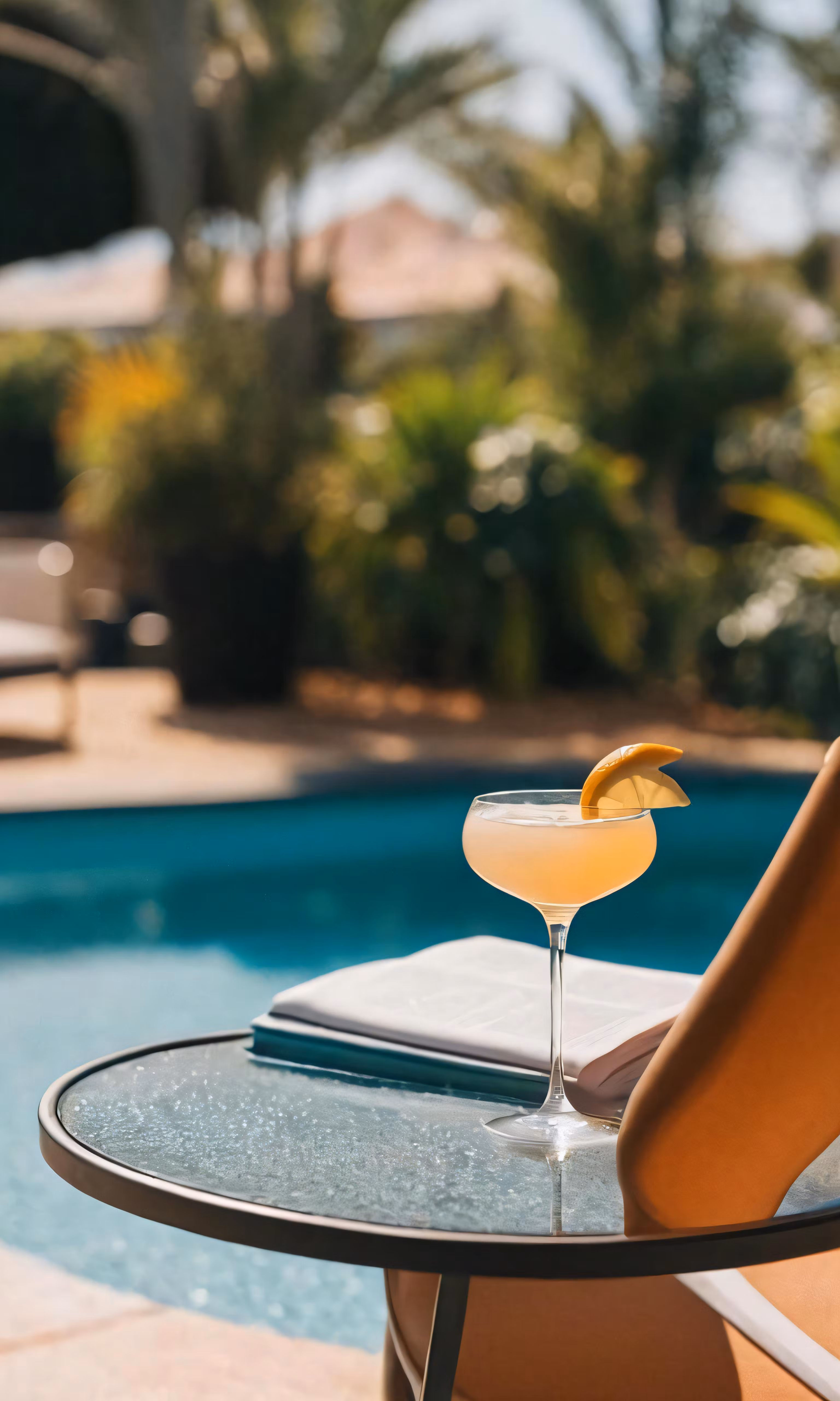 High resolution picture, free to use, an advertisement for a bicycle shop and it says 30 /a glass of alcoholic drink and the back of a pool are shown