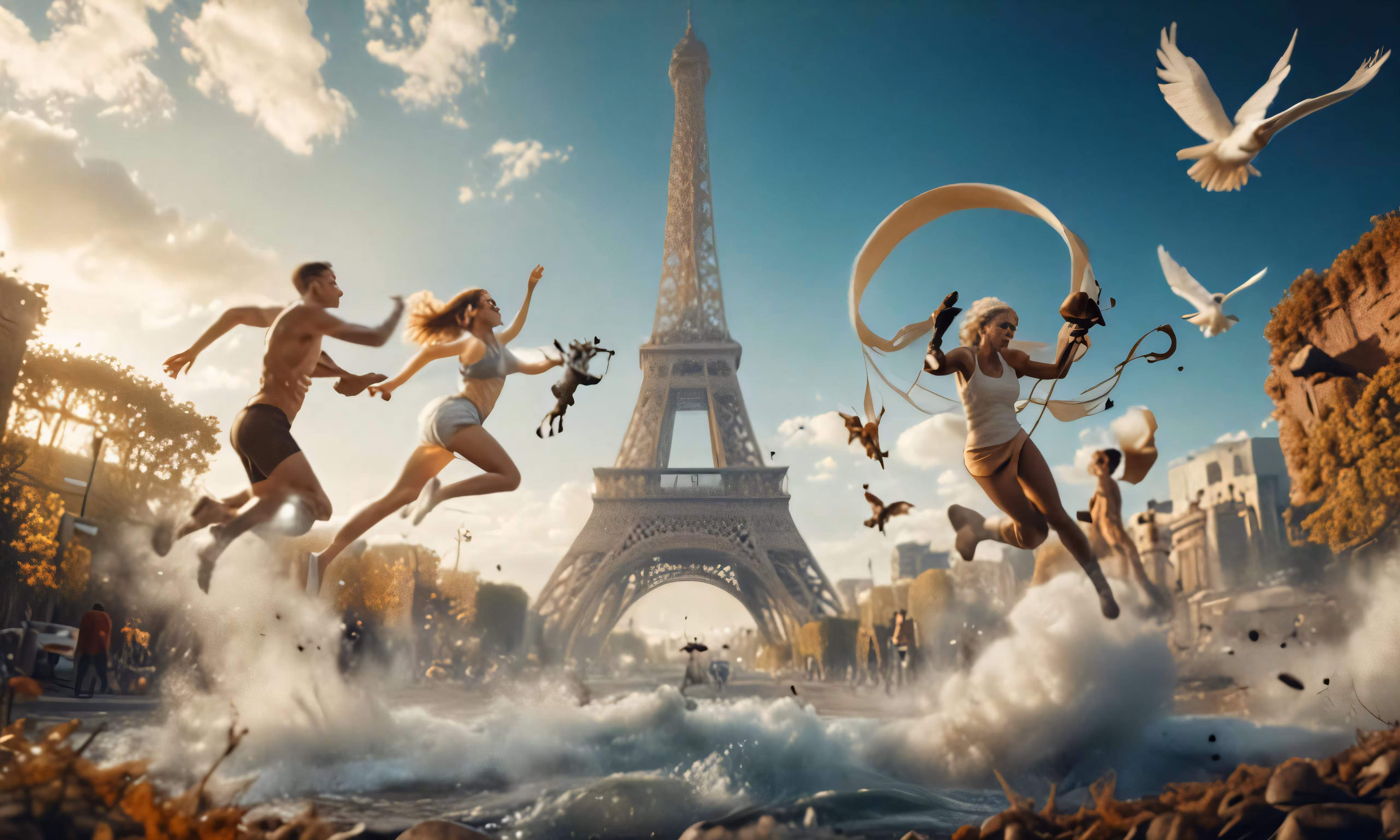 High resolution picture, free to use, an advertisement for a bicycle shop and it says 30 /a group of people in front of the eiffel tower