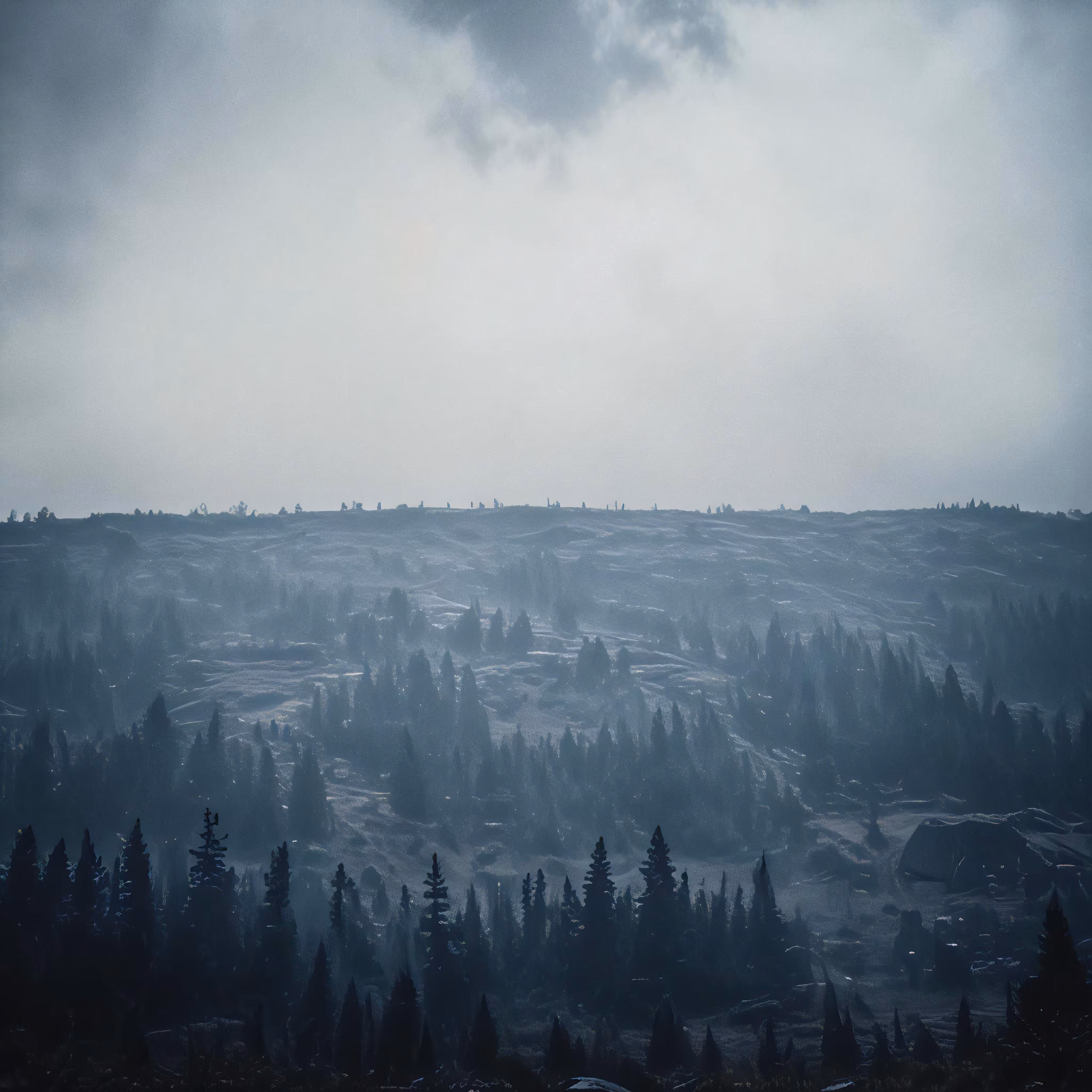 High resolution picture, free to use, an advertisement for a bicycle shop and it says 30 /a hill surrounded by evergreen trees under cloudy skies