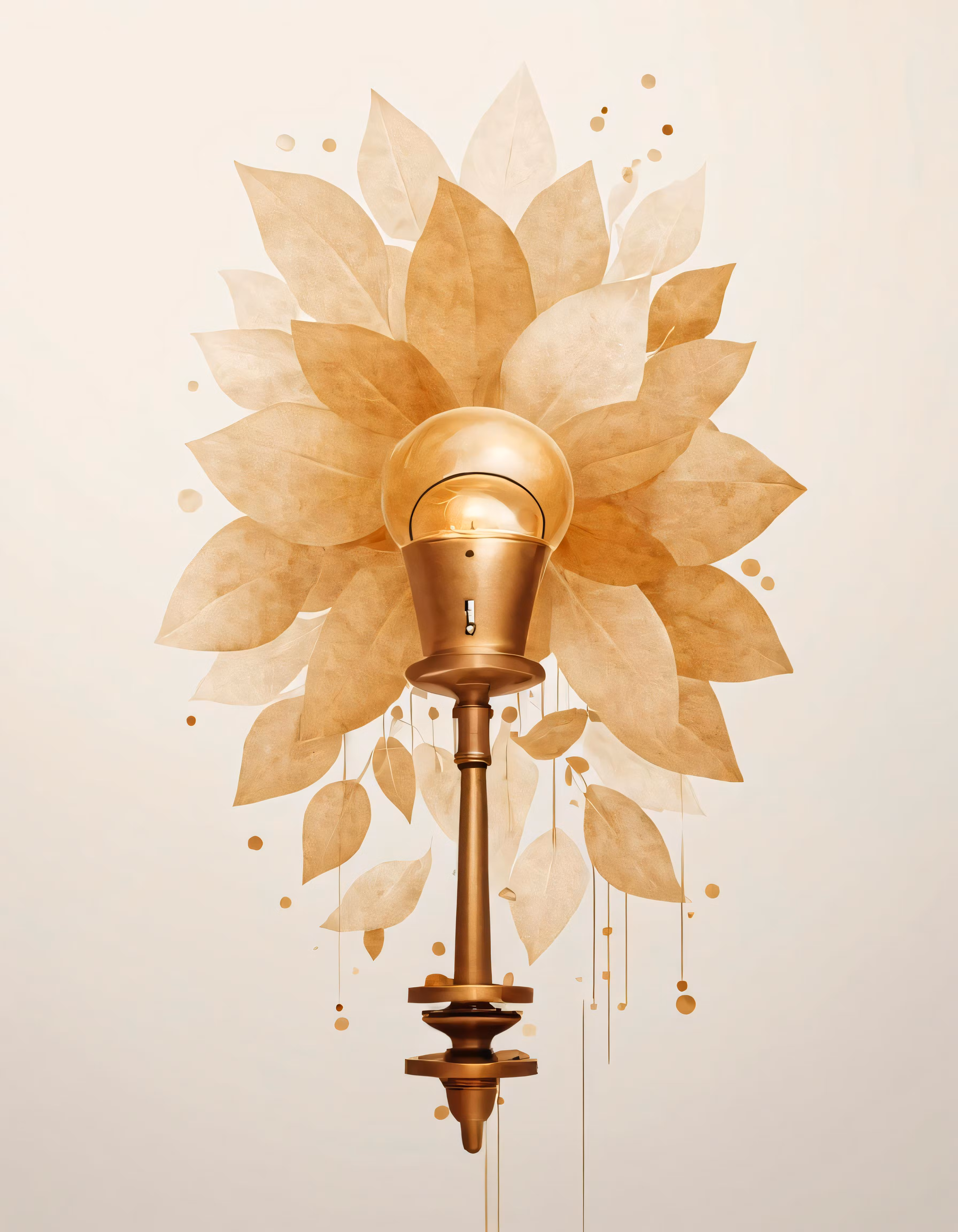 High resolution picture, free to use, an advertisement for a bicycle shop and it says 30 /a lamp with gold petals that are attached