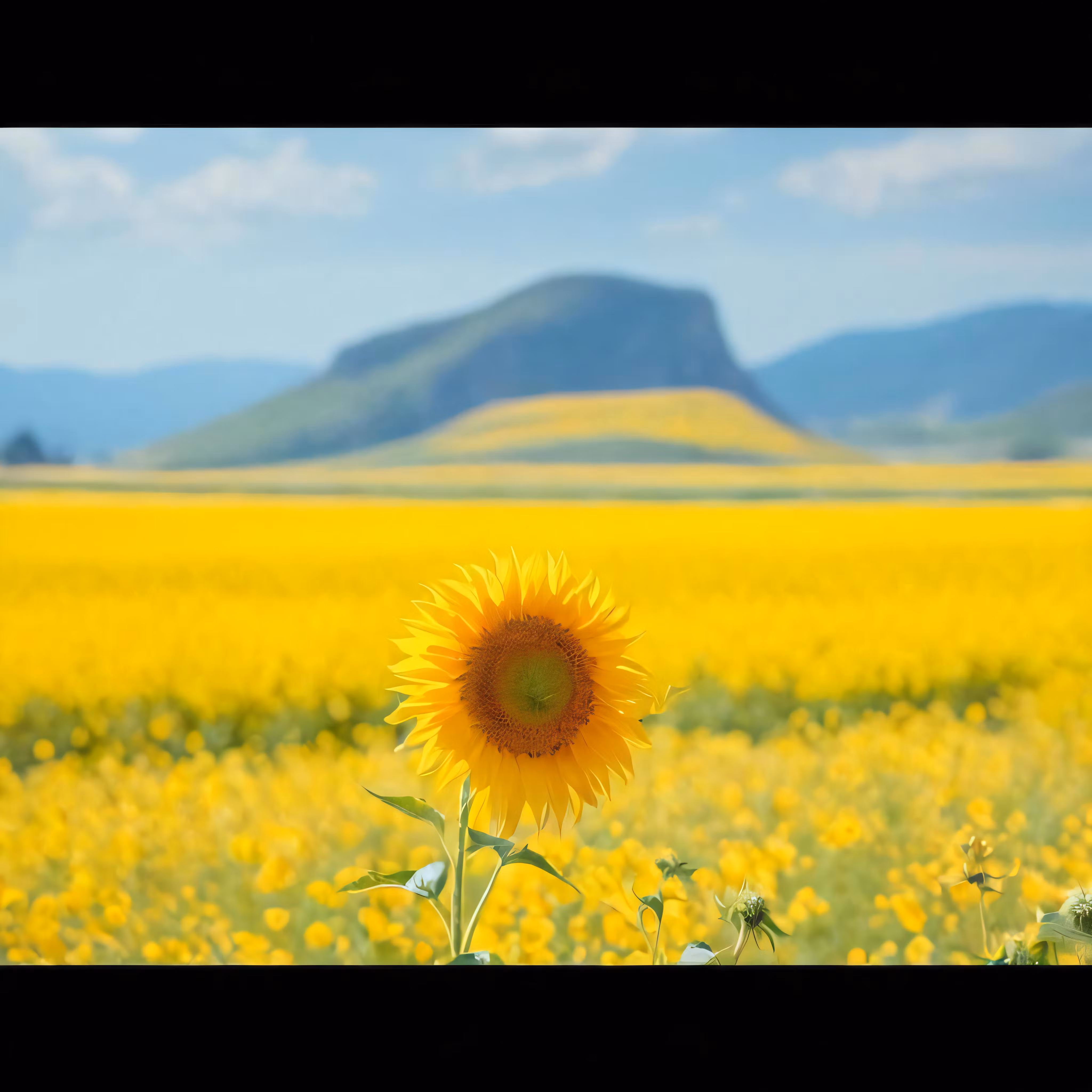 High resolution picture, free to use, an advertisement for a bicycle shop and it says 30 /a large sunflower in a field of yellow flowers