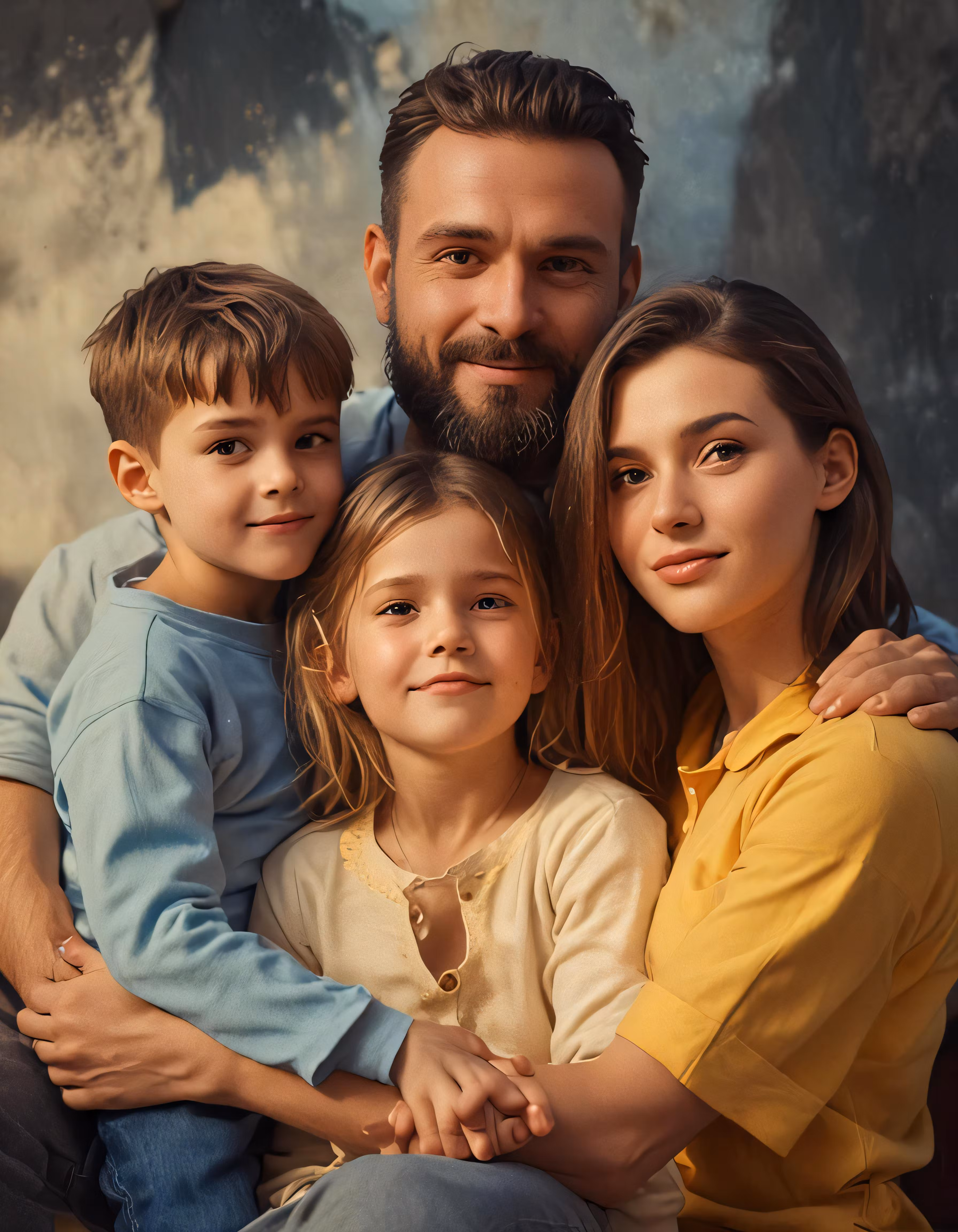 High resolution picture, free to use, an advertisement for a bicycle shop and it says 30 /a man and two children are posing for a family picture