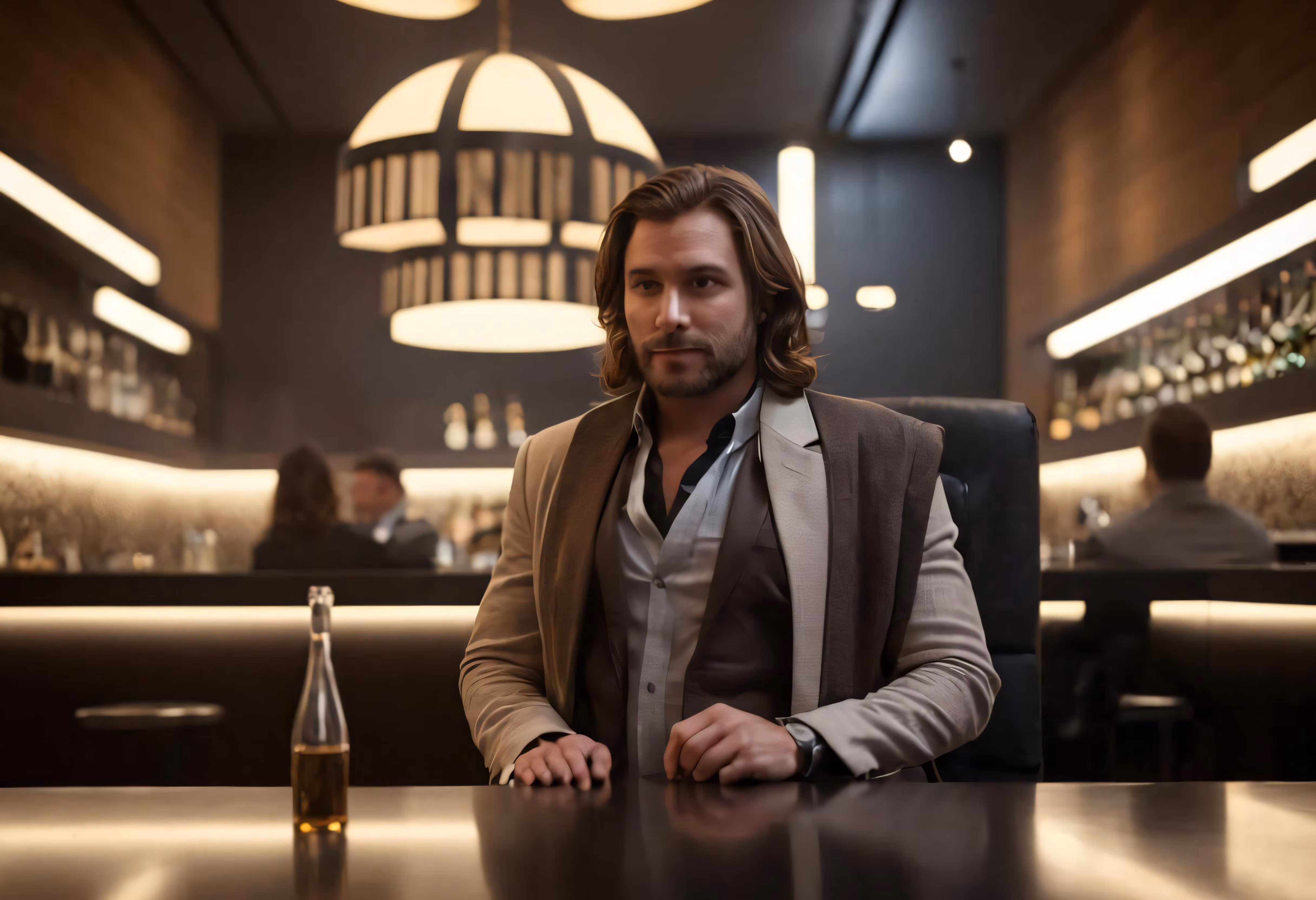 High resolution picture, free to use, an advertisement for a bicycle shop and it says 30 /a man sitting at a table with a bottle on it