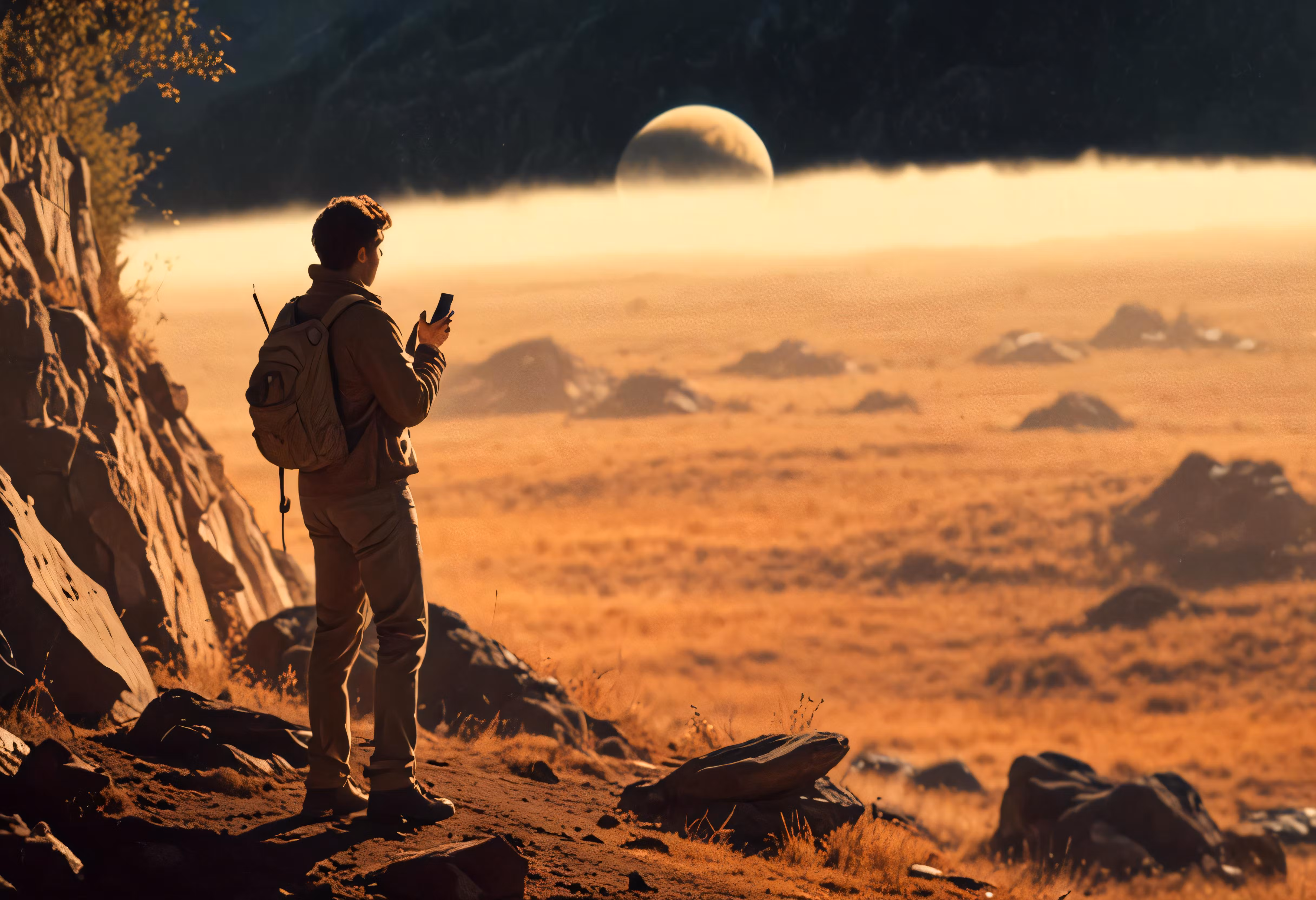 High resolution picture, free to use, an advertisement for a bicycle shop and it says 30 /a man standing on top of a rocky hill