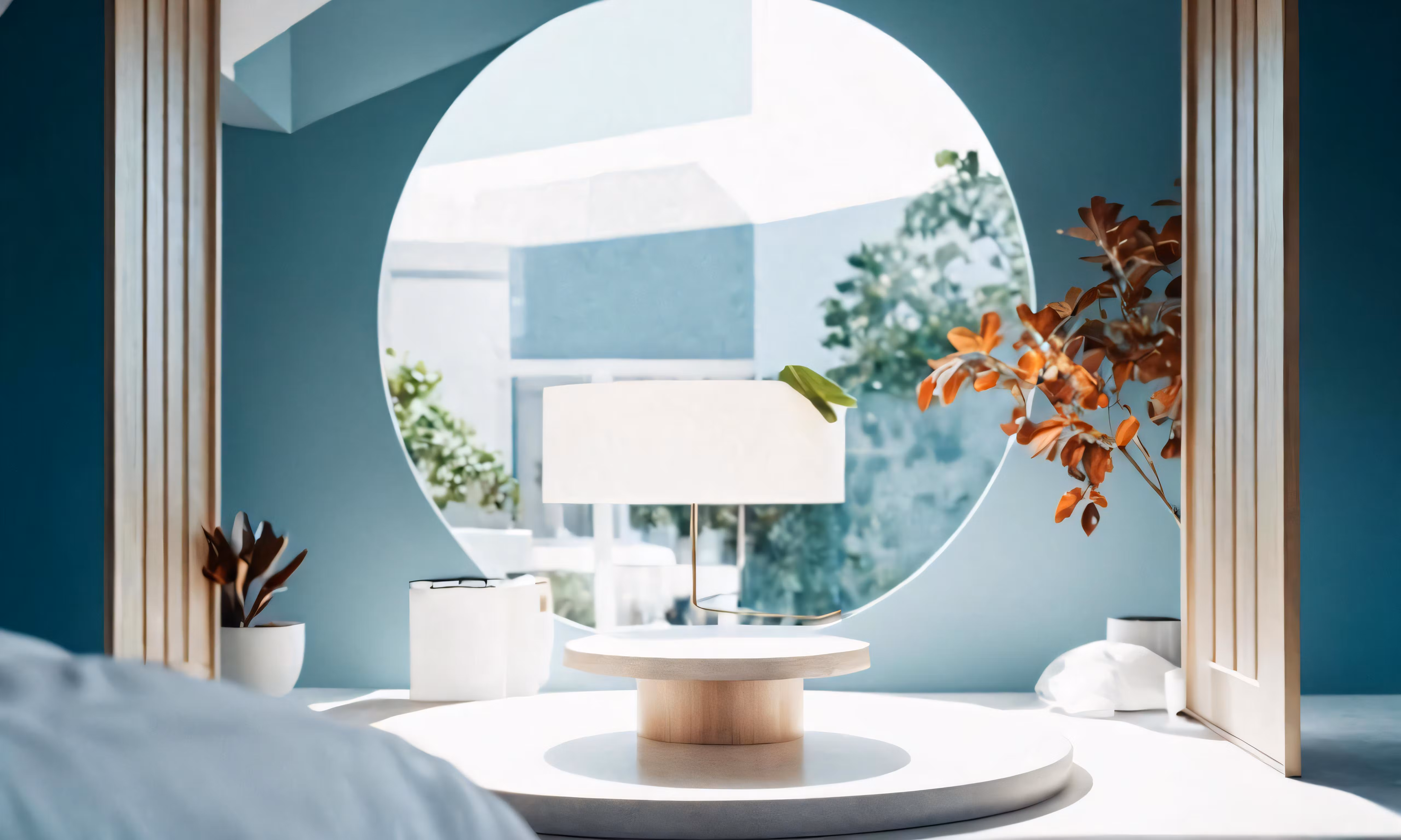 High resolution picture, free to use, an advertisement for a bicycle shop and it says 30 /a mirror that is on the side of a bed